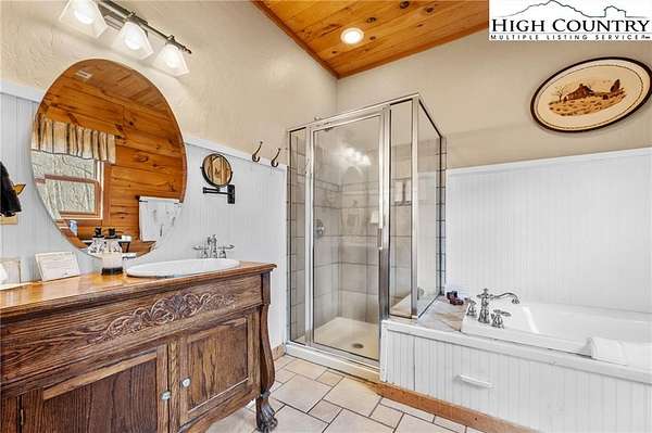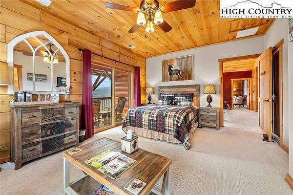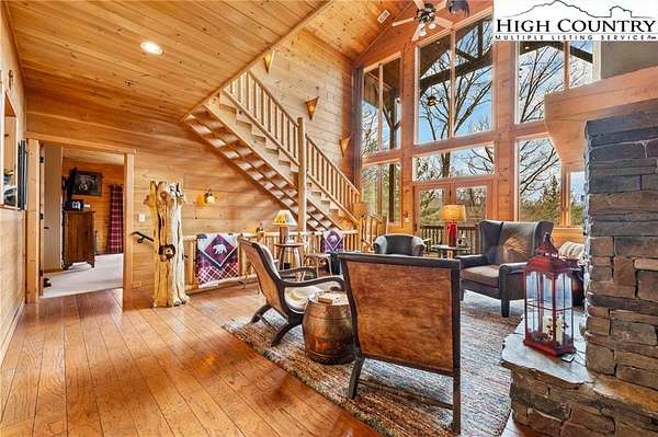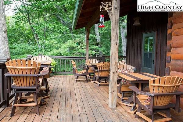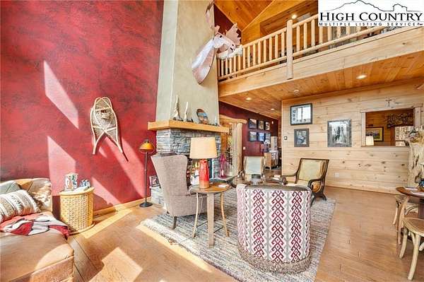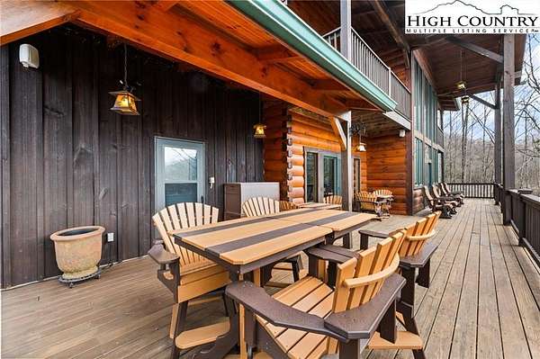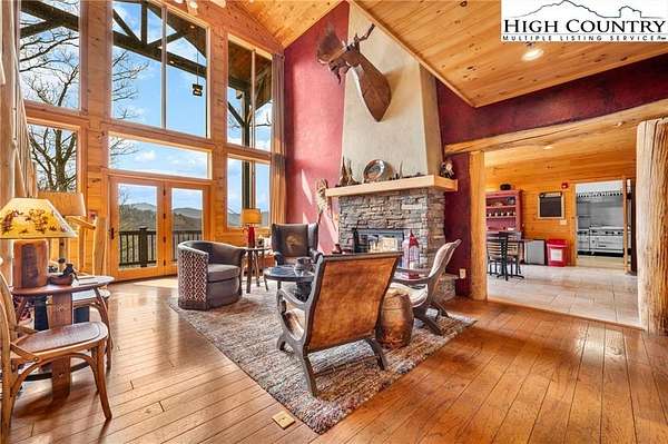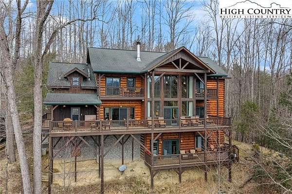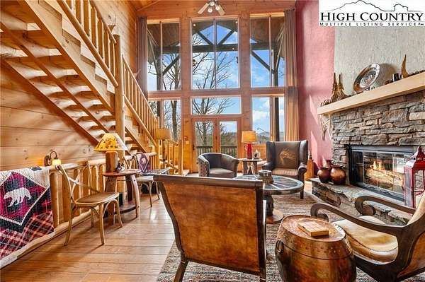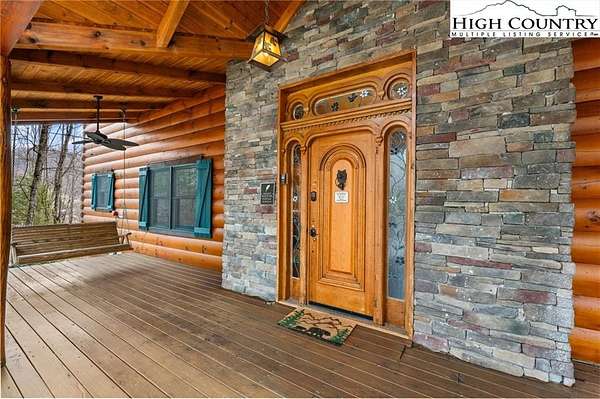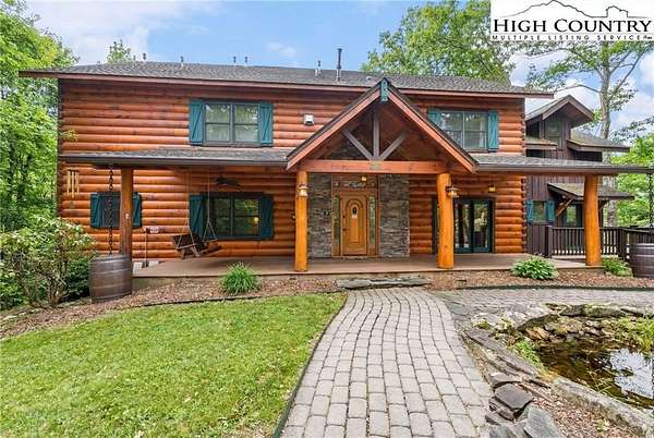 Breathtaking long range layered mountain views create an unforgettable backdrop for this extraordinary luxury mountain retreat in the heart of Valle Crucis. The main part of the lodge was crafted with the timeless character of Logs America, offering exceptional quality, impressive scale, and warm yet refined mountain elegance. Impeccably decorated and beautifully maintained, this remarkable property has been featured in local magazines and offers a rare blend of luxury, comfort, and versatility. Designed to accommodate both quiet retreats and larger gatherings, the home features 6 spacious suites, each offering a private en suite bath with separate soaking tub and shower, along with its own propane fireplace for a true retreat like experience. High ceilings and expansive living spaces enhance the sense of openness throughout, while views from nearly every room bring the beauty of the mountains indoors. The main living area is both grand and inviting, with an extra large dining space and wet bar that also lends itself beautifully to a den or lounge setting. The commercial kitchen provides excellent function and flexibility and could easily be transformed into a stunning dream kitchen. Multiple rooms open onto several levels of deck space, creating exceptional indoor /outdoor living with plenty of room for relaxing, dining, and entertaining against a backdrop of layered mountain views. The lower level offers wonderful flexibility with separate living quarters and entrance, ideal for extended family, guest accommodations, or additional rental space. A recently renovated kitchen with custom cabinetry and chiseled edge granite counters adds style and function, while the generous additional space and bonus room are ideal for a 3rd living area, game room, media room, or creative hobby space. Laundry on both the second floor and lower level adds convenience and accessibility. Outside, the property is equally impressive, with a large parking area, beautiful native plantings and perennials, a pond with waterfall feature, and a welcoming rocking chair front porch. Every detail invites you to slow down, take in the views, and enjoy the peaceful beauty of this exceptional setting. Ideally located in Valle Crucis, yet just 15 minutes to Boone, near Blowing Rock, the skiing of Sugar and Beech Mountains, famed Blue Ridge Parkway, hiking trails, the original Mast General Store, and the stocked Watauga River for trout fishing, this property offers a premier High Country lifestyle with convenient access to some of the area’s most sought after destinations. Currently operating as a successful Bed and Breakfast, this property carries the prestigious designation of Select Registry lodging, and offers the opportunity to continue as an established inn, or reimagine it as an exceptional single family home, mountain getaway, or luxury vacation rental. Most furnishings are negotiable, offering even more possibilities for a seamless transition into your vision.