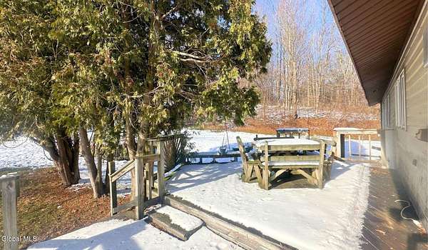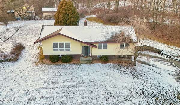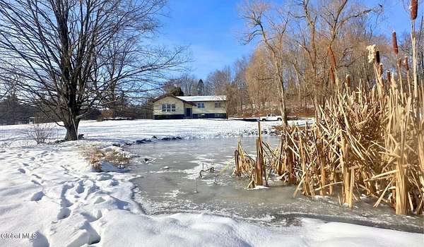 Enjoy serene country living in this well-maintained 3-bedroom, 2.5-bath raised ranch on 1.5 acres with a picturesque front pond. Built in 1978, the home offers 1,476 sq ft with pristine hardwood floors, a bright open layout, and a spacious kitchen with ample counters and a breakfast bar. The finished lower level provides added living space with a wood-burning fireplace, entertainment bar, half bath, and direct access to the oversized 2-car garage. Outdoors feature wooded borders, open yard space, and a deck area prepped for an above-ground pool. Located on a quiet dead-end road with convenient access to I-90, Taconic Parkway, Albany, Hudson, and Pittsfield. Move-in ready and well-suited for year-round living or a peaceful retreat.
