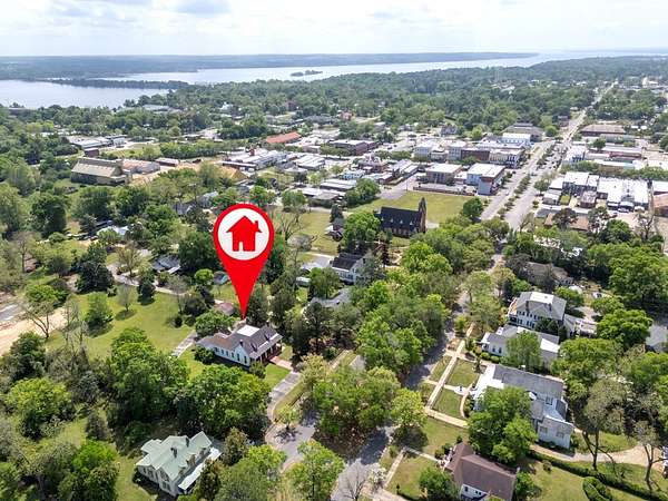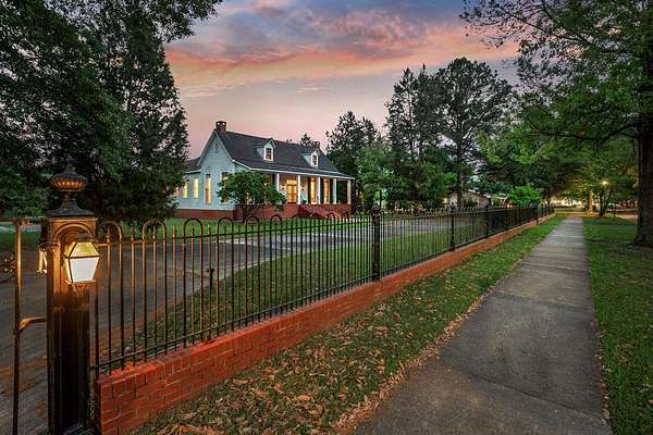 Presenting a rare opportunity to own a piece of Alabama's rich history. This enchanting home, circa 1875, is nestled on a picturesque, tree-lined street just a short stroll from the vibrant heart of the town of Eufaula, where charming boutiques and popular local eateries await. Step inside to discover a blend of original character and modern convenience. The main level boasts original heart pine floors, soaring ceilings and large walk-out windows that frame the vast completely fenced property. As you enter the elegant foyer, you are flanked by spacious double parlors with cozy, working fireplaces providing wonderful atmospheres for relaxing evenings. The updated large kitchen features beautiful views of the estate grounds, new stainless-steel appliances and ample custom cabinet space, seamlessly combining historic charm with contemporary function. A grand formal dining room is perfect for hosting unforgettable gatherings. The primary bedroom features two independent ensuites for the proud owners. Upstairs, you will find two bedrooms and a full bath for guests. The vast grounds offer a private oasis like no other, ideal for quiet enjoyment or lively entertainment on the expansive front porch. The home has been lovingly maintained and retains its original coving and millwork, preserving its historic integrity while offering the comforts of today's living with attached garage and many updates. This is more than a home; it's a lifestyle. Schedule your private viewing today!