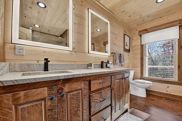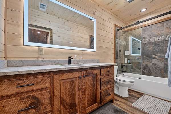 Luxury Riverfront Retreat on the Toccoa River! Beautifully decorated and fully furnished, this exceptional turn-key cabin offers approximately 140 feet of pristine Toccoa River frontage in a highly convenient Blue Ridge location. Designed for refined mountain living, the spacious open-concept floor plan is ideal for entertaining & everyday comfort. Leathered granite countertops add warmth, texture, & durability. Both interior fireplaces have been upgraded to gas with electronic start and remote controls, delivering effortless comfort and ambiance year-round.The terrace level features a second living area with a wet bar, creating the perfect space for guests or private relaxation. Generously sized bedrooms provide flexibility, with the layout easily accommodating three master-suite style bedrooms. An oversized tankless gas water heater ensures endless hot water.Outdoor living is equally well-appointed with grills plumbed directly to th emain propane line & electrical hook up already in place for a hot tub. A second side driveway has been added, providing convenient access to the terrace level. Thoughtful technology and design upgrades include smart-home exterior lighting (Lutron) with remote access and programmable scheduling, Ring cameras, smart door lock, and video doorbell with motion and entry notifications, and back-lit, app controlled nest thermostats, & internally defogging bathroom mirrors throughout for a refined, spa-like experience.Enjoy spring trout fishing, summer tubing and kayaking, brilliant fall foliage, and peaceful winter riverfront evenings. A beautifully maintained common area pavilion at the river's edge enhances the resort-style setting. Short-term rentals are permitted, making this a rare opportunity for luxury personal enjoyment or a high-performing investment property.