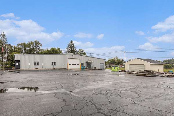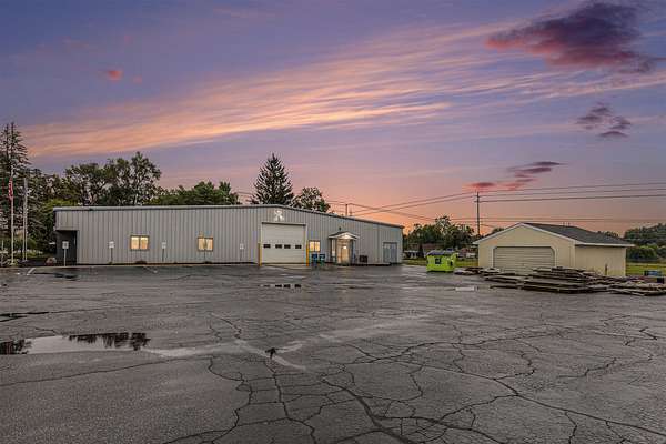 Beautifully maintained industrial building offering nearly10,000 sq ft, 2,000+ sq ft of main office space featuring multiple offices, large kitchen/break room. Shop area includes additional offices, floor and water drains, and multi-stall men's & women's restrooms. Property features a 15' overhead door with loading ramp included, 800 amp service with high-voltage capability, air compressors to remain, and full HVAC/AC throughout (new AC June 2024). Steel free-span construction with underground sprinkling, plus a 24x24 storage garage. Ample on-site parking with potential option to purchase adjoining back lots. Conveniently located just off M-91, ideal for a wide range of industrial uses.
