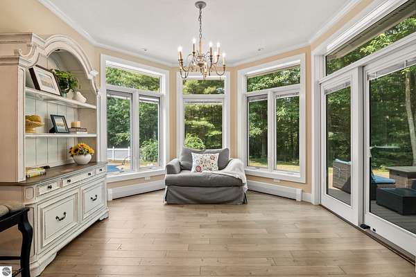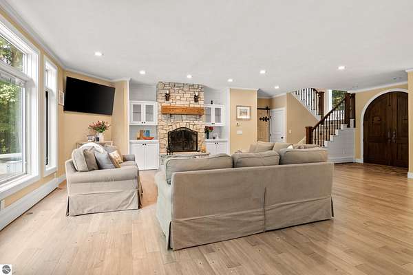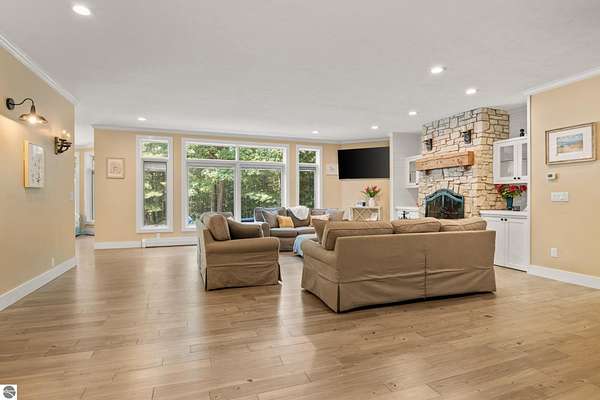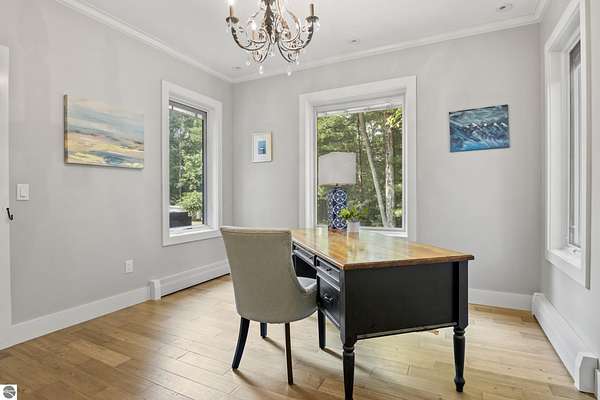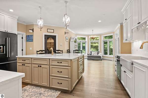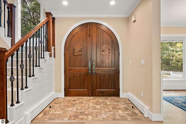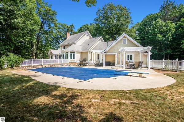 Wow! Claim your piece of Michigan's paradise in Long Lake Township with this beautiful home on an estate-sized parcel! This private haven is a stunning 5-bed 4 bath home, spanning 4200 sf of carefully crafted living space on 9 acres. A two-story executive home built with attention to detail & recently updated with a new gourmet kitchen with granite, top of the line appliances, locker room, laundry, AC, new bathrooms, wood fireplace, Pella windows, high speed internet, smart home features, and so much more. 315 W Long Lake lives large with its high ceilings and spacious rooms. It also features an insulated attached garage, with an additional separate stall serving as a pool pump house. All of this is nestled within a harmonious blend of open spaces and gorgeous mature trees. The property, spread across more than 9 acres, is a wildlife haven with professionally landscaped grounds, enhanced by underground irrigation and fencing. Experience tranquility near the 229-acre South Long Lake Twp Forest Natural Area, an ideal spot for trail exploration and outdoor adventures. The property is also horse and small animal-friendly. The 30' x 54' insulated pole barn, equipped with 14 W x 10 H and 10' W x 10' H overhead doors, includes an extra half bath and plenty of room for boat and equipment storage, animals, projects, and more. The pole barn also houses a climate-controlled 11' x 16' room, perfect for an office. The home itself boasts hardwood and tiled floors, a main floor master suite with a spacious walk-in closet, and a beautifully designed primary bath with a walk-in tiled shower. The practical main floor mudroom and laundry room provide well designed spaces. Situated near Long Lake, Bass, and Dyer Lake, with public boat launches just a short drive away, and close to the amenities and schools of Traverse City, this property offers the perfect balance of privacy and convenience. All information is not guaranteed and should be verified by the buyer and buyer's agent.