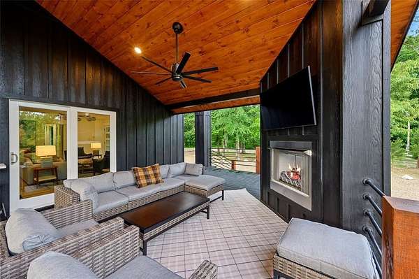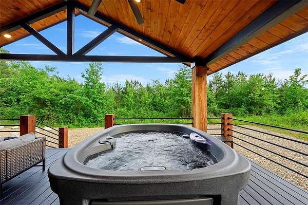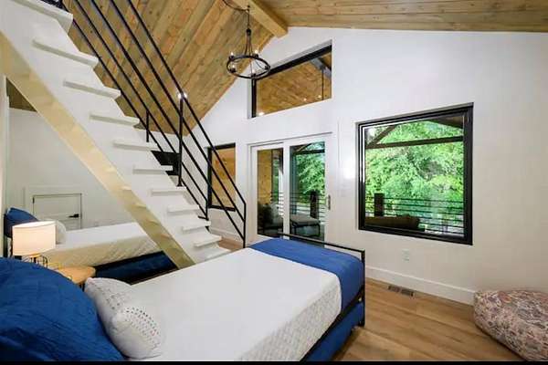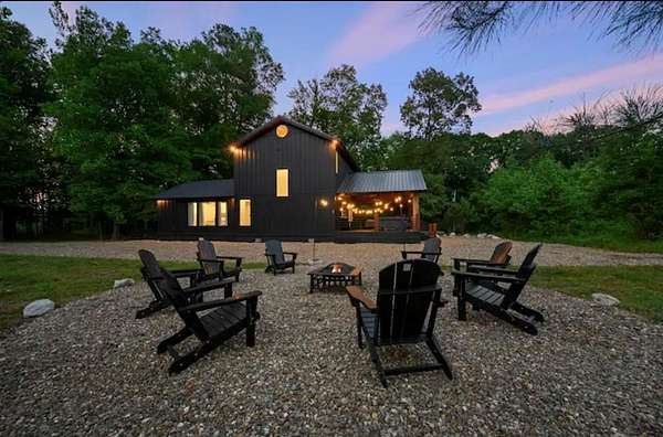 Escape to Dogwood Manor-a stunning modern cabin that effortlessly blends luxury, privacy, and income potential. This turnkey investment is a proven performer, earning Airbnb's coveted "Guest Favorite" status with consistent 5-star reviews. Set on a private lot with serene winter river views, every inch reflects precision craftsmanship and thoughtful design. Though privately tucked away, the property is a short commute to dining, shopping, and outdoor adventures. Inside, the open-concept layout is bright, spacious, and beautifully furnished by Norwalk Interiors. The gourmet kitchen features a gas range and designer finishes, while the living area centers around a dramatic 60-inch electric fireplace. Two ground-floor primary suites each include private baths for ultimate comfort. Upstairs, a versatile bedroom with a full bathroom and direct balcony access can serve as a home office, game room, or cozy retreat. A third-story loft adds extra sleeping space or a playful hideaway. Outdoor living is just as remarkable: featuring an impressive 845 sq ft of deck space - ideal for outdoor entertaining and relaxation, bubbling hot tub under the stars, an inviting gas fireplace, a hard-lined gas grill, and a glowing fire pit framed by romantic string lights. Elevated amenities-Starlink internet, dual HVAC systems, 200-amp Generac generator, monitored security system, 2 laundry rooms, Toto bidets, and Tesla EV charger. Investment opportunity: a second lot is available with existing infrastructure, for expansion inquire for more details. Whether you envision another STR cabin, a private residence, workshop, or an upscale garage, the groundwork is set with an oversized private well and thoughtful site planning. Experience the perfect blend of nature, comfort, and possibility in one extraordinary investment.