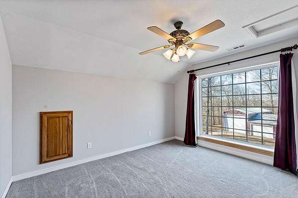 40 acres of scenic views, privacy, and beautifully manicured grounds just minutes from Pineville and the bypass! This energy-efficient 3BR/2BA custom home features a heated and cooled atrium, two bonus rooms (no closets), a cozy wood stove, and a FEMA-certified safe room that doubles as the master closet. Recent upgrades include newer 2-zone HVAC, water heater, water softener, filtration system, and a whole-home and shop generator. Enjoy the oversized composite deck overlooking the countryside. The insulated 30x80 shop offers a workshop area and an oversized bay for even the largest of RVs with a 14' overhead door. The park-like acreage includes garden beds, fruit trees, asparagus, berries, pond, tree stand, and trails throughout. Impeccably maintained inside and out!