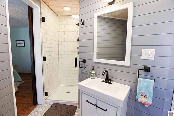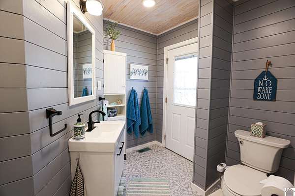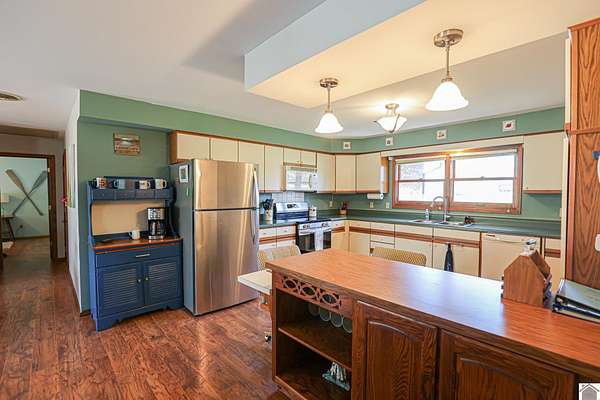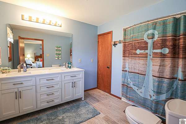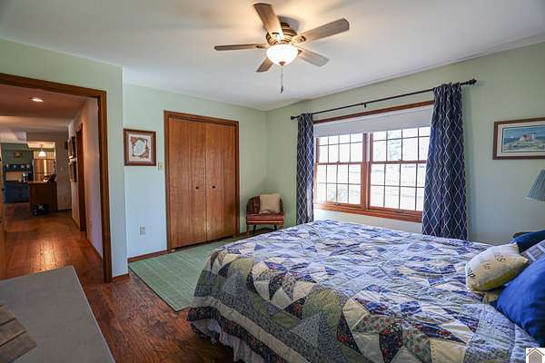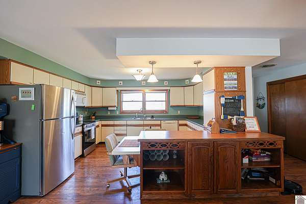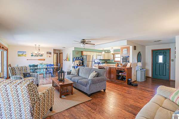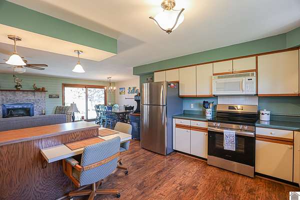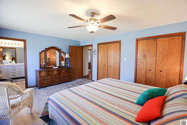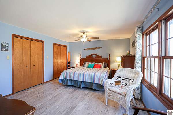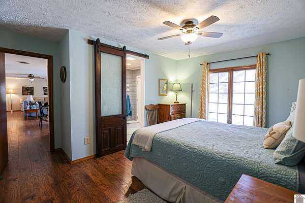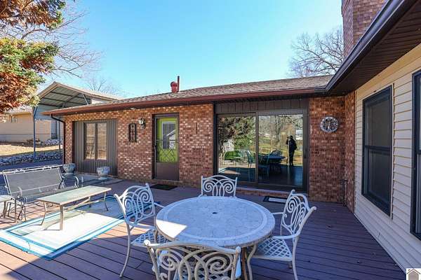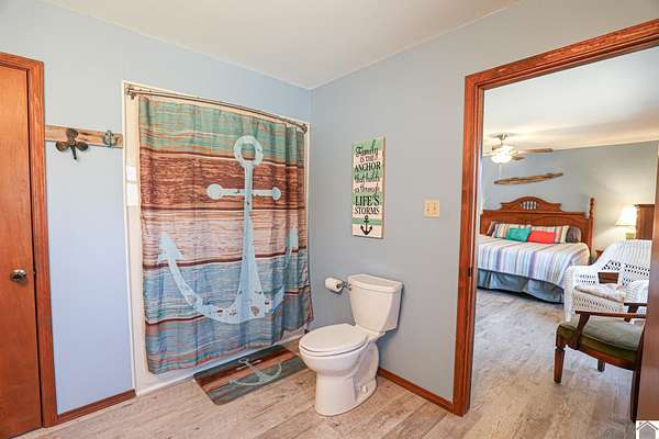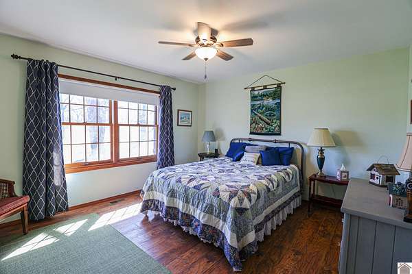 Enjoy the lake lifestyle with the privacy of a wooded setting in this 3 bedroom, 3 bathroom waterfront home situated on 1.56 acres. The property features an attached 2 car garage, detached 1 car garage/shop, and a carport ideal for boat storage. A gentle slope down to the water and shared dock. Inside, the living room offers a cozy fireplace, while the kitchen provides bar seating and ample storage. A beautiful sunroom captures serene views, creating the perfect place to relax. With a split floorplan, the primary suite offers privacy, a generous closet space, and an ensuite bathroom. Two additional bedrooms are located on the opposite side of the home, including one with its own modern ensuite. This property offers the perfect blend of lake living and peaceful surroundings. Property is turnkey; furniture is included!
