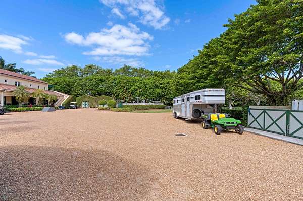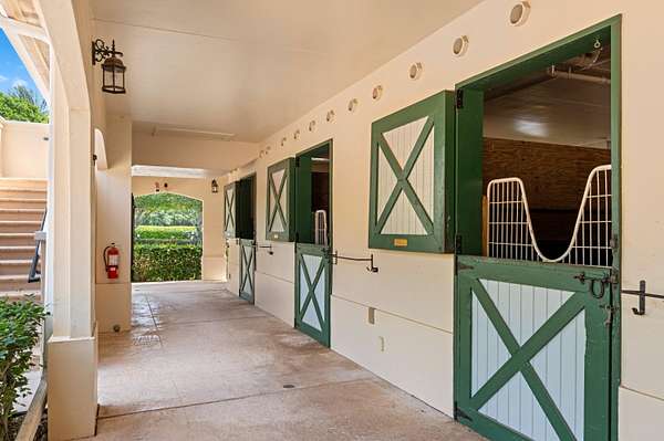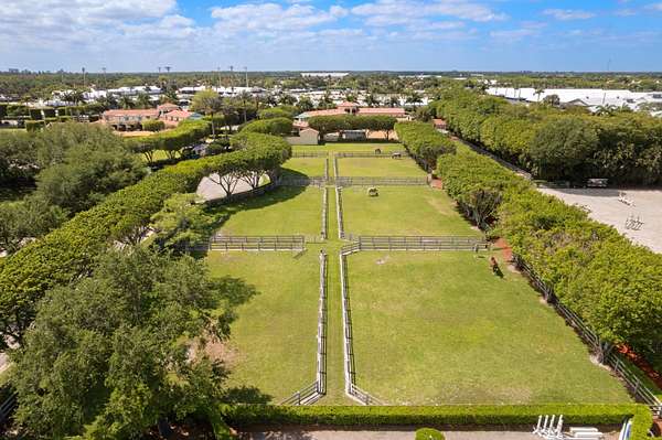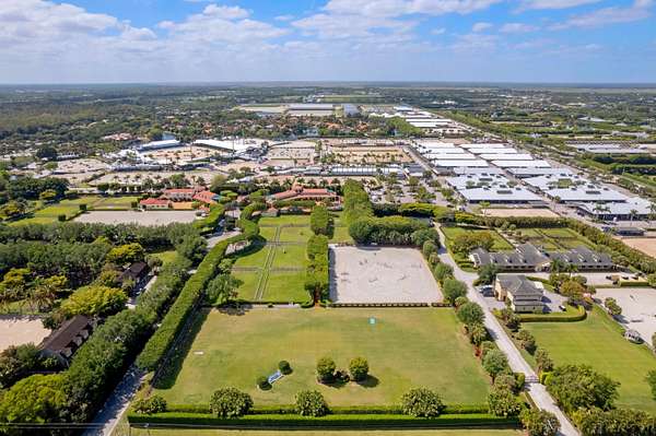 Rare opportunity to own one of the most intriguing equestrian farm locations just steps away from the world-renowned Winter Equestrian Festival in Wellington. Perfectly positioned for riders, trainers, and investors alike, this exceptional property offers both convenience and a fully equipped, income-producing setup on just over 6 acres. Designed with functionality and comfort in mind, the farm features two well-appointed living quarters above the barn. Suite One offers a spacious 3-bedroom, 2.5-bath layout, while Suite Two includes 4 bedrooms and 2 bathrooms, highlighted by a convenient Jack-and-Jill design-ideal for staff, guests, or rental income. The barn is equipped with 16 stalls and 4 wash stalls, complemented by a fly spray system to ensure optimal care and comfort for the horses. The property includes nine well-maintained paddocks, all supported by water cannon irrigation for efficient and consistent coverage. Equestrian amenities are second to none, featuring a professional riding arena along with an oversized grass warm-up/cool-down arena positioned at the front of the property for easy access and presentation. Additional features include a 4-horse circular (walking pen), a large garage-style storage facility, and two additional storage sheds to accommodate all equipment and operational needs. For a unique elevated perspective, the property also offers an upper-level viewing gazebo, perfect for observing training sessions or enjoying the tranquil farm setting. This is a rare blend of location, infrastructure, and versatility-ideal for seasonal use, full-time operations, or investment in one of the most sought-after equestrian destinations in the world.