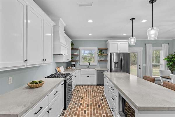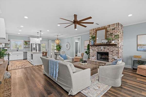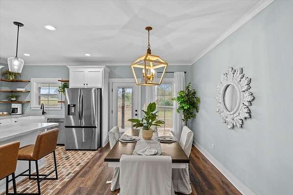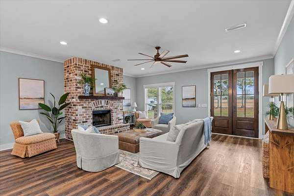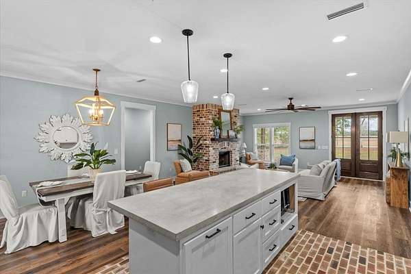 Experience the perfect blend of modern luxury and rural serenity in this stunning 3-bedroom, 3.5-bathroom home built in 2022. Situated on a sprawling 2-acre lot, this property offers an ideal private retreat with an easy commute to Fort Rucker and quick access to Boll Weevil Circle shopping. The 1,901-square-foot interior is meticulously maintained, featuring a cozy fireplace, stylish flooring, and premium custom closets designed for maximum organization. The exterior is a homeowner's dream, boasting a massive 30x30 enclosed metal building perfect for a workshop added in 2024, along with a brand-new fence installed in 2025 for added security. With a durable metal roof, energy-efficient construction, and a location within top-rated school zones, this move-in-ready estate represents a rare opportunity for contemporary living in Enterprise.