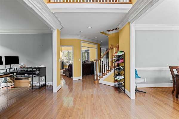 - Disappearing Attic Stairs, Entrance Foyer 2 Story, High Ceilings 9 ft Main, High Ceilings 9 ft Upper, Recessed Lighting, Smart Home, Sound System, Vaulted Ceiling(s), Walk-In Closet(s)