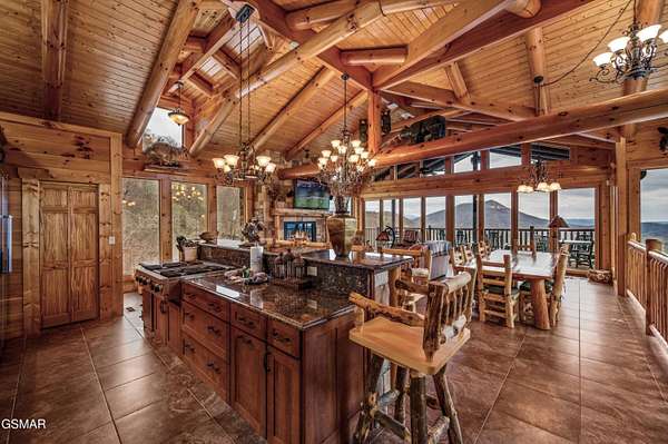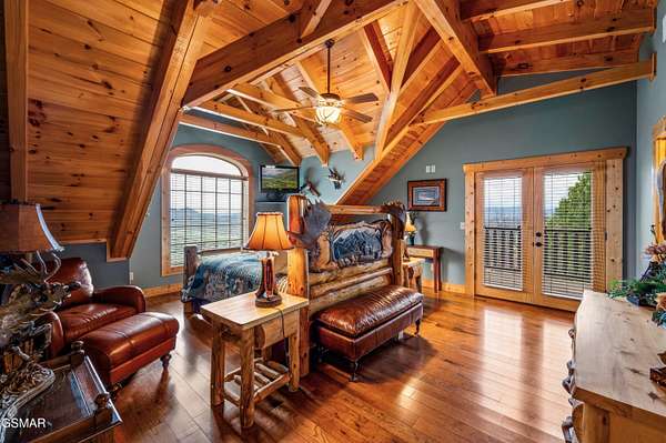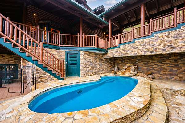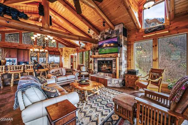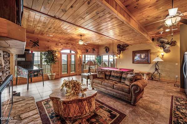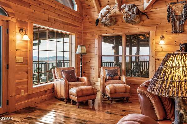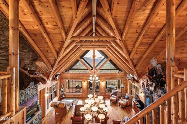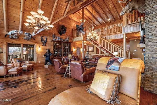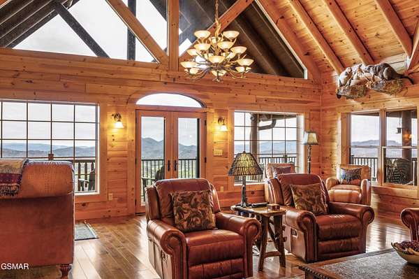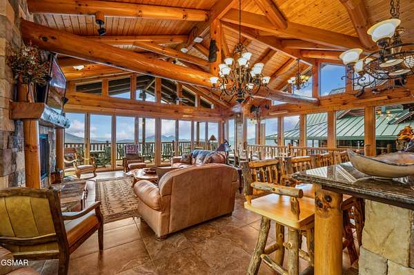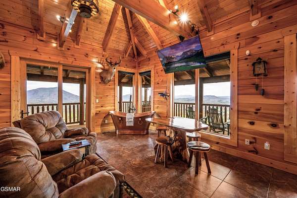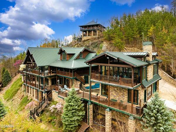 Top of the world private Estate! This extraordinary Estate consists of 3 structures and sits on approximately 24 private acres. This luxurious property is a haven that is just now being offered as an overnight rental. It offers almost every amenity one could imagine. Amenities include 2 separate gourmet kitchens, separate entertaining areas, sauna, outdoor heated pool, hot tub, movie theater, outdoor firepit, vaulted ceilings, granite counter tops, Viking appliances and wraparound porches with a stunning view of the mountains and Wears Valley area. The home is also equipped with a whole house Cummings generator. This exceptional home is great for entertaining a large group as an investment property or serves well as a private or 2nd home getaway. And with the additional acreage and over the top views would serve well as a mountain top wedding venue! Property is being sold furnished. Please note this property has a shared well.