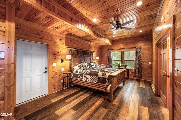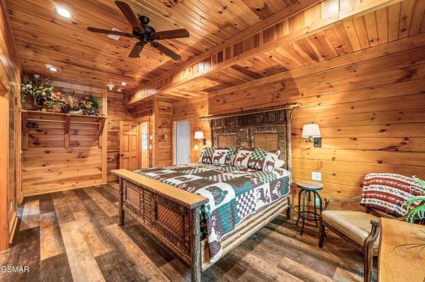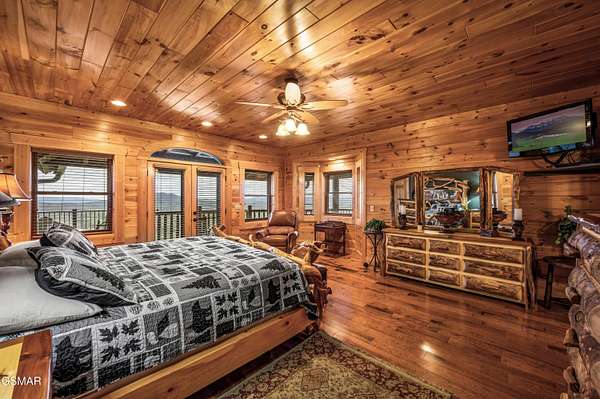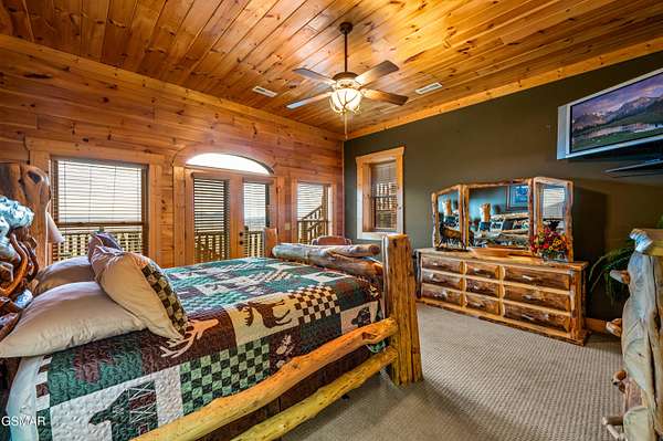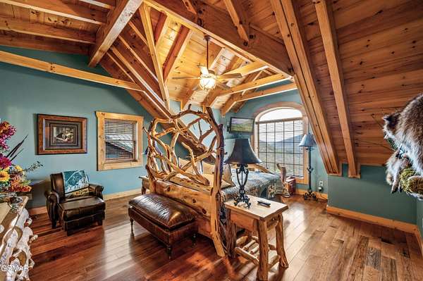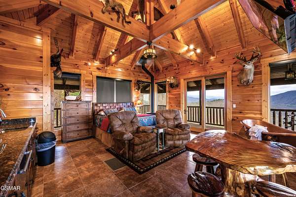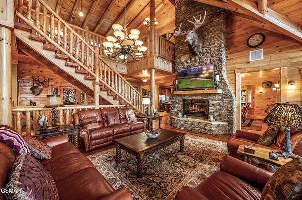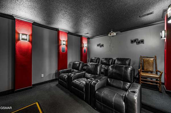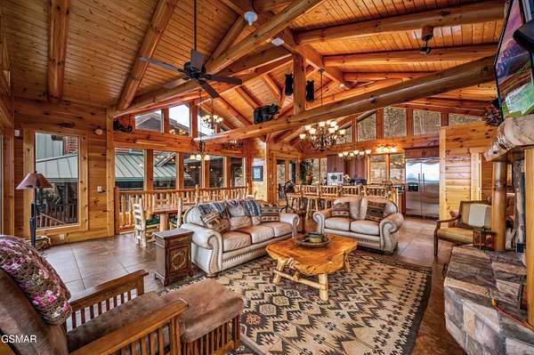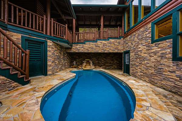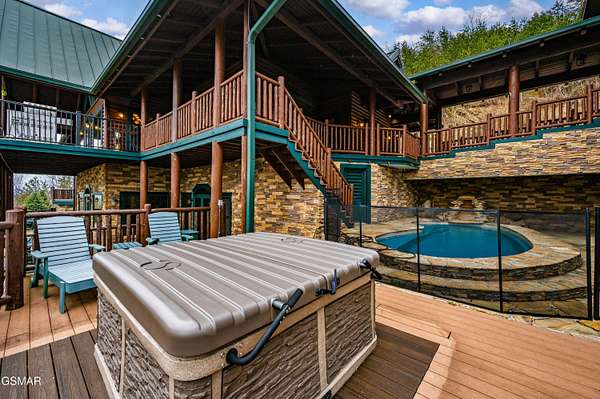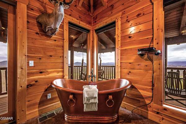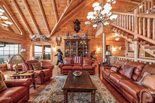 Top of the world private Estate! This extraordinary Estate consists of 3 structures and sits on approximately 24 private acres. This luxurious property is a haven that is just now being offered as an overnight rental. It offers almost every amenity one could imagine. Amenities include 2 separate gourmet kitchens, separate entertaining areas, sauna, outdoor heated pool, hot tub, movie theater, outdoor firepit, vaulted ceilings, granite counter tops, Viking appliances and wraparound porches with a stunning view of the mountains and Wears Valley area. The home is also equipped with a whole house Cummings generator. This exceptional home is great for entertaining a large group as an investment property or serves well as a private or 2nd home getaway. And with the additional acreage and over the top views would serve well as a mountain top wedding venue! Property is being sold furnished. Please note this property has a shared well.
