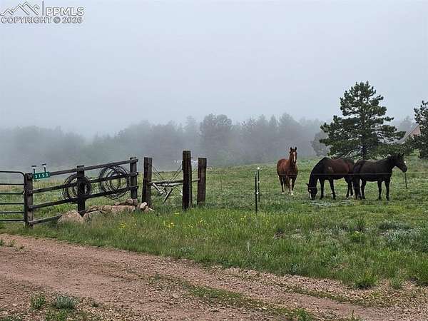 Embrace true off-grid comfort powered by solar energy paired with thoughtful handcrafted details throughout. The home's elegant design includes soaring vaulted tongue-and-groove ceilings, warm ceramic tiled floors, earthy tones, abundant skylights, breathtaking Pikes Peak views, and natural light that floods every space. The seamless open floor plan unites a captivating great room, dining area, sunroom, and kitchen into one inviting, multifunctional living space. The kitchen impresses with tiled and solid wood countertops, custom backsplashes, solid wood cabinetry, and stainless steel appliances. Passive solar gain from the sunroom warms the home naturally by day, while radiant baseboard hot water heating ensures cozy, even temperatures year-round. A wood stove in the great room adds rustic charm and supplemental warmth, complemented by the deep straw bale walls in the primary wing for superior insulation and unique character. The main-level bath offers a luxurious custom-tiled ensuite with a deep soaking tub. Upstairs, the second bedroom provides a serene, private guest retreat and/or studio space with ample storage. Outdoors, a spacious 17x49 timber building with an oversized bay door accommodates vehicles, trucks, a tractor, and all your recreational toys. The property is perfectly set up for self-sufficiency and hobby farming, complete with a greenhouse, chicken coop and run, and dedicated garden space. Equestrian enthusiasts will appreciate the 24x25 barn with stalls and level green pasture for grazing. The land itself is stunning-dotted with aspens, pines, meadows, and willows-creating a picturesque, serene setting. A well logged at 15 gpm supplies abundant water. Just minutes from Eleven Mile Reservoir for premier fishing and boating, with world-class recreation literally steps from your back porch. Enjoy year-round mountain beauty and adventure in this one-of-a-kind sanctuary.