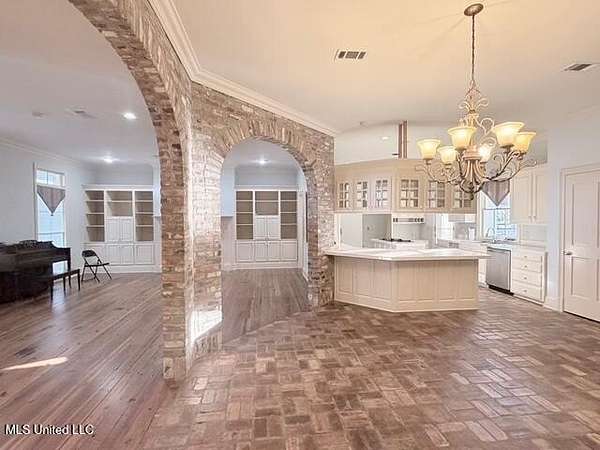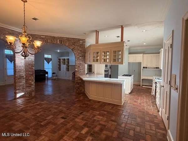 Beautifully designed and thoughtfully crafted, this custom home sits on approximately 1.5 acres, offering privacy and timeless character just off Louis Wilson Drive. From the moment you arrive, the wood rail fence lining the driveway sets the tone for the peaceful, secluded setting. Inside, the home features exceptional architectural details, including brick archways connecting the living and dining areas, brick paver flooring in the dining room and kitchen, and warm pine floors flowing through the living room and wet bar area. The home features two fireplaces positioned back to back-one in the living room and one in the primary bedroom-each serving as a cozy focal point within its own space. The kitchen is open to the dining area and features custom cabinetry, abundant built-ins, a built-in desk, and a pantry with fold-out Lazy Susan shelving. A pass-through window to the living room enhances the open feel while keeping the spaces connected. The home offers four bedrooms and three full baths, including a private guest suite with its own full bath. One of the secondary bedrooms opens to a large media room, providing excellent flexibility for a home theater, playroom, or additional living space. The spacious primary bedroom suite includes its own fireplace, a huge walk-in closet, and an adjoining office with a built-in desk and a fold-down drafting table. The laundry room is conveniently located directly off the primary suite's walk-in closet. The primary bath features double vanities, a jetted garden tub, and a walk-in shower. All bedrooms include walk-in closets with extensive shelving and built-ins. In addition, the home includes a generous amount of floored attic space, offering excellent storage and potential for future finish-out. This well-designed home blends custom craftsmanship, functional living spaces, and a serene setting-an exceptional opportunity in Brandon.