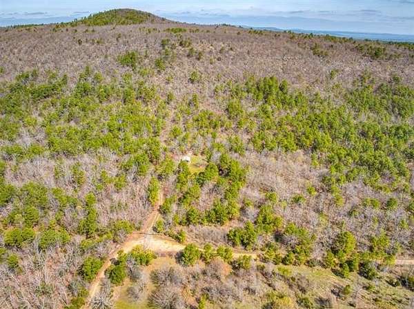 Welcome to Panther Mountain Nestled near the renowned Robbers Cave in Kinta, Oklahoma, this remarkable almost 80-acre property is an absolute dream for nature enthusiasts, hunters, and anyone seeking serenity. Boasting a gated entry for privacy and security, the land is designed for both relaxation and adventure. Multiple RV sites already have septic systems installed, making this property ready for your plans. The stunning stocked ponds, complete with charming bridges, offer the perfect setting for fishing or simply unwinding amidst nature's beauty. From the mountain tops, you'll enjoy breathtaking views that epitomize tranquility. True to its reputation as a hunter's paradise, the land is abundant with wildlife, including deer, turkey, bears, and more. Whether you're envisioning a peaceful retreat, preparing for hunting season, or craving the calm of natural surroundings, this property checks all the boxes. Located in scenic Haskell County, don't miss this rare opportunity to make it yours. Reach out today for more details or to arrange a visit. Cabin site already started as well as a big outdoor pavilion with outdoor kitchen, fire pits, etc. already built and ready for your hunting paradise. Drone photography coming soon.