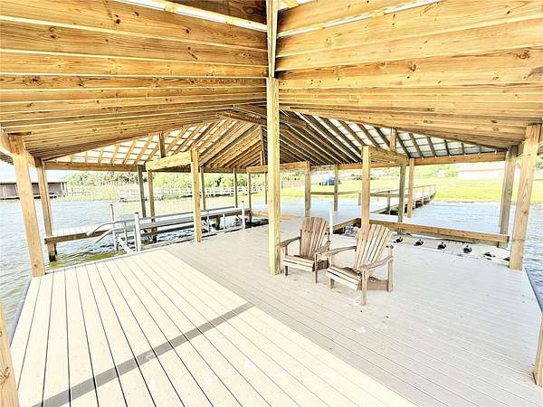 The property is already prepared for construction with a new dock (2025), covered boat slip, solar-powered pontoon boat hoist, newly installed well, and cleared building site following prior home removal. A lake-fed irrigation pump is also installed, providing convenient landscape watering capability.