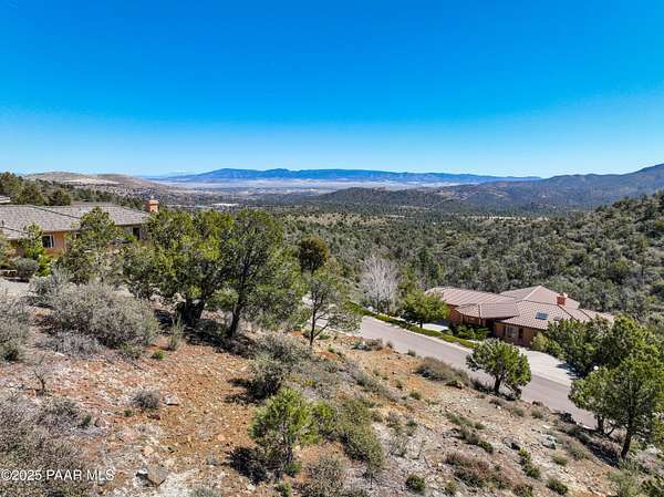 This stunning home site in The Ranch, Prescott, is enveloped by breathtaking panoramic views of the mountains. Paved roads leading to it, this lot offers a serene setting adorned with natural flora and fauna. It's an ideal spot for witnessing the spectacular Arizona skies, all while enjoying the mature trees surrounding the property. Utilities are readily accessible, adding convenience to this beautiful location. Plus, it's conveniently situated less than 15 minutes away from a variety of shopping options, delightful restaurants, and the vibrant downtown Prescott. A perfect opportunity to build the home of your dreams!