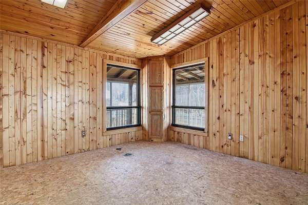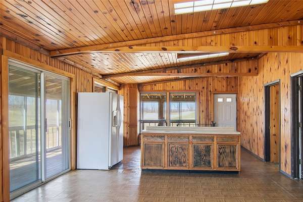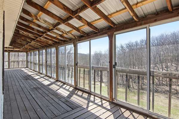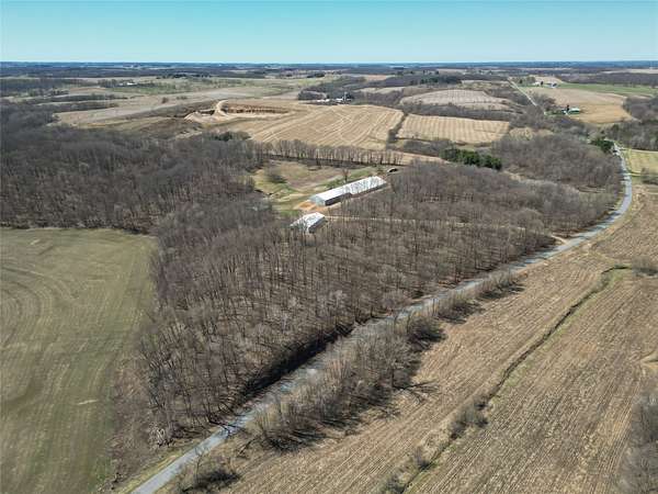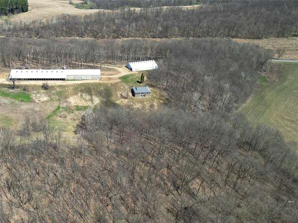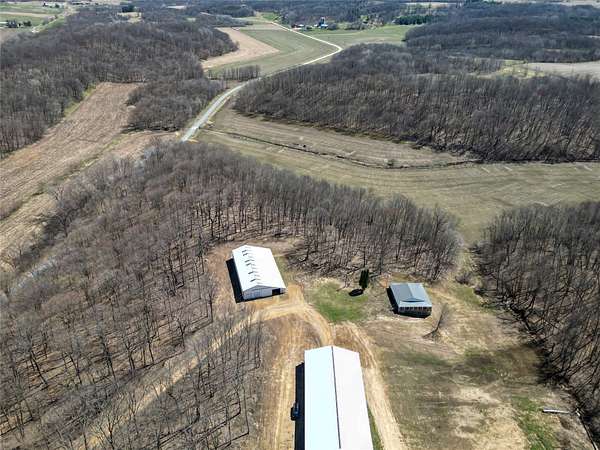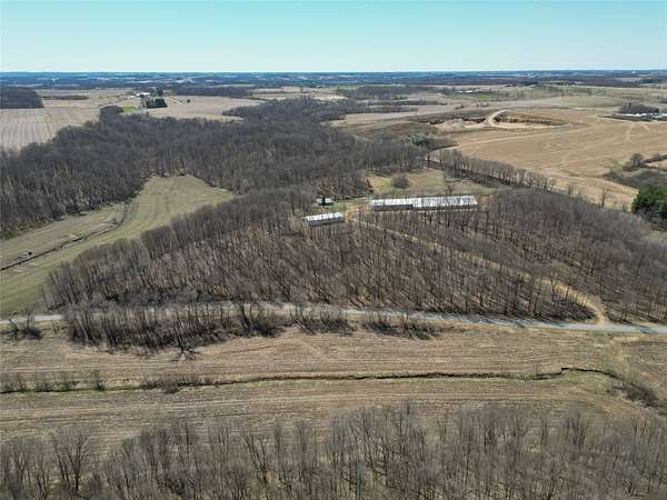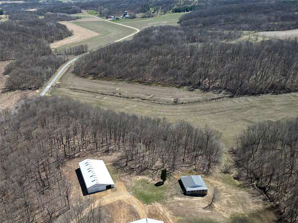 Unique country property offering privacy, versatility, and incredible views! This 2-bedroom home is tucked away on approximately 9.98 acres and features beautiful wood accents, a wraparound porch, and a walk-out lower level-perfect for enjoying the surrounding landscape and abundant wildlife. The property includes an impressive 40' x 104' pole building with concrete floor, electricity, two overhead doors with openers, and a 20' lean-to-ideal for storage, hobbies, or business use. Whether you're looking to renovate and create your dream home, invest in a private hunting retreat, explore a potential flip opportunity, or simply take advantage of the exceptional outbuilding space, this property offers endless possibilities. Owned by a multi-generational farming family, the home and one outbuilding are now being offered for sale w/9.98 acres and survey will be completed soon. Seller will retain the west outbuilding, land west of the driveway and the field located southeast of the subject property. Driveway will be shared. Enjoy peaceful seclusion, wide-open space, and the best of country living. NEW STEEL ROOF and Water Heater in 2025.
