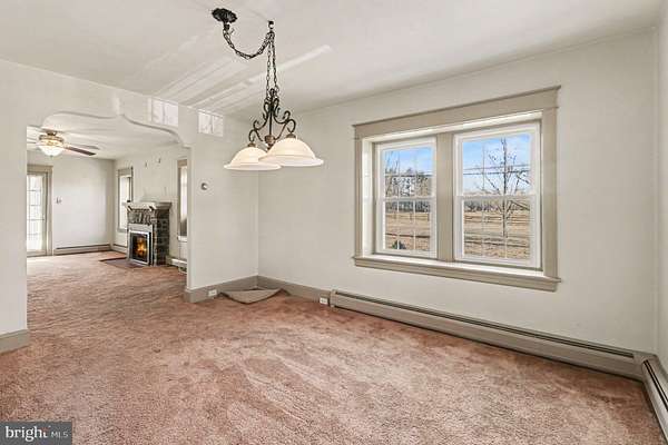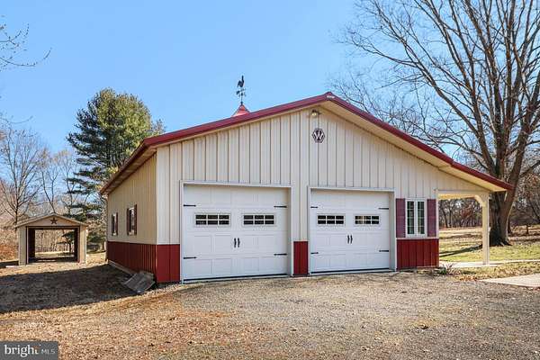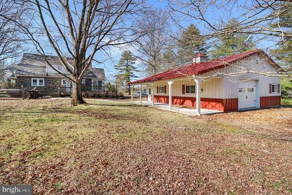 Offers have been received. Seller calling for all best and finals by Wednesday 3/18 at 5pm. Searching for a 4-bed home in Doylestown Township with acreage and privacy and only 10 minutes to downtown Doylestown? This home offers a rare opportunity with 7.21 beautiful acres with a pond and backing to a creek, a classic 1944 Craftsman-influenced Cape Cod design, and a large detached 4 car garage perfect for a car enthusiast or workshop or to keep all of your toys in! Located in the coveted Central Bucks School District just minutes from Historic Doylestown Borough, this property blends character, space, and convenience. Step inside to the cozy living room featuring a gas/propane stone fireplace to warm those cold winter nights and cooled by a ceiling fan for those warmer days. A separate dining room with a bay window creates a bright gathering space, while the remodeled eat-in kitchen includes plenty of oak cabinetry, granite countertops, recessed lighting, and radiant heated tile flooring. A sliding door from the kitchen opens to a 45x14 rear deck, offering wide views of the surrounding acreage and a french door from the living room leads to a covered side patio overlooking the fenced portion of the yard perfect for your fur babies to run fee in. The first floor includes a bedroom and full bath for flexible living options, along with a rear foyer providing access to the deck, powder room, and basement. Upstairs leads you to three additional nice sized bedrooms, one with a bonus room or large closet, all that share a full hall bath. Outdoor living is a highlight with a covered side porch, expansive deck, and a peaceful property that includes a pond. The Morton Built Garage is 30' x 40' and comes with 10' Ceilings, Ceiling Fans, Double Insulated Ceiling/Walls, T1-11 Installed Walls and Wooden Ceiling Shelving around the Entire Garage and an extended covered patio overlooking your scenic yard. Parking capacity includes 4 garage spaces and 6 driveway spaces. Located in Doylestown Township within the Central Bucks School District, this property offers convenient access to shopping, dining, parks, and major commuter routes while maintaining the privacy and flexibility that come with 7.21 acres with public sewer access available. Opportunities like this 4-bed home in Doylestown Township rarely become available so close to town.