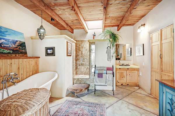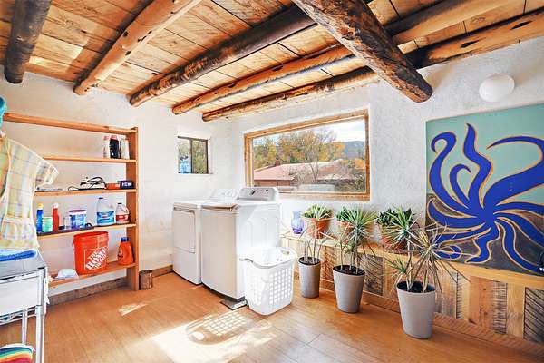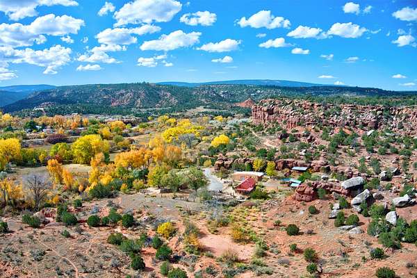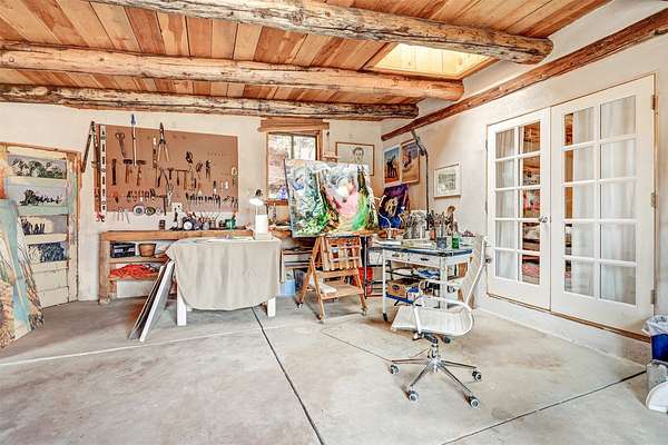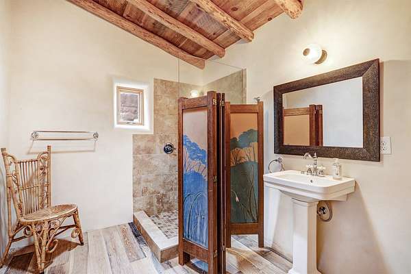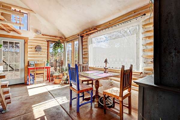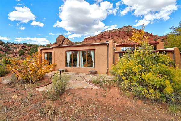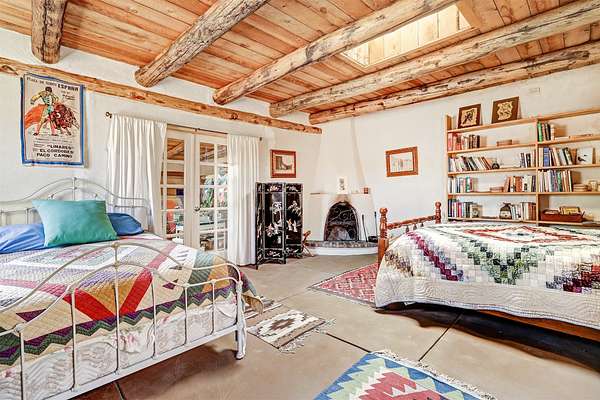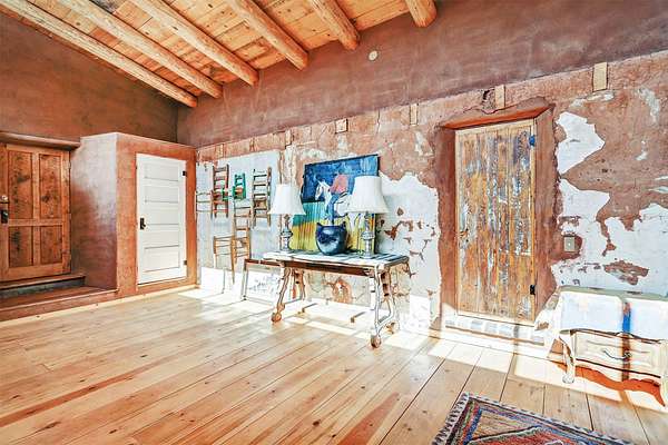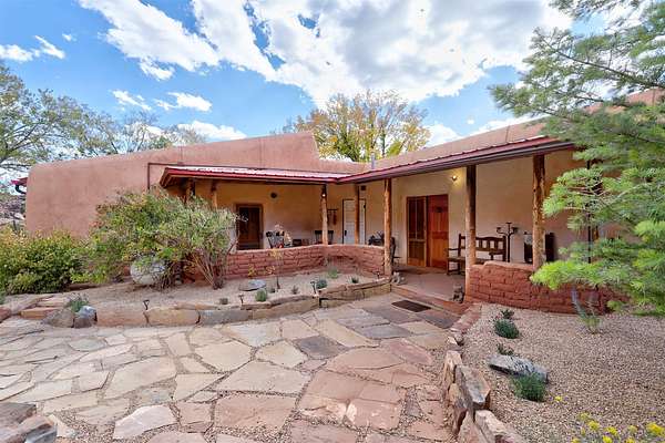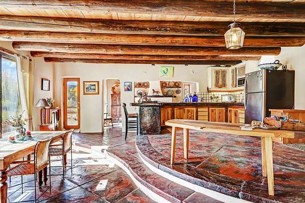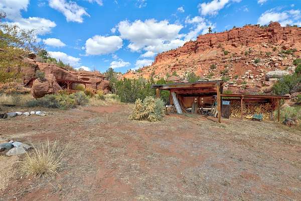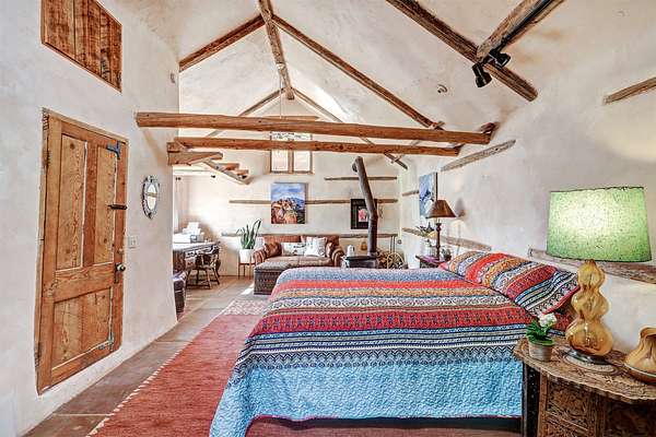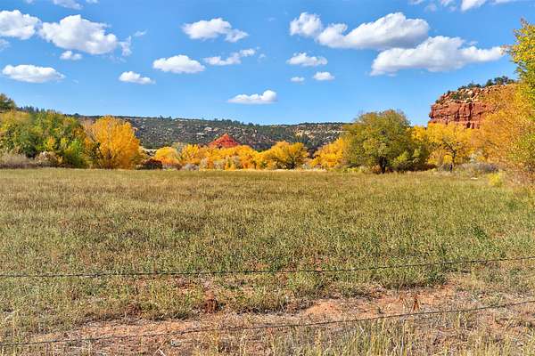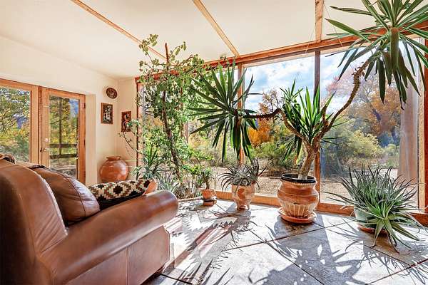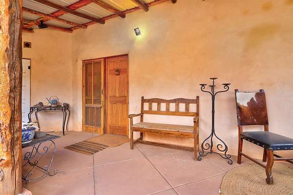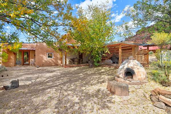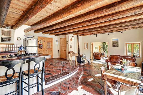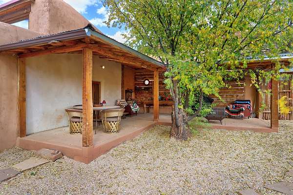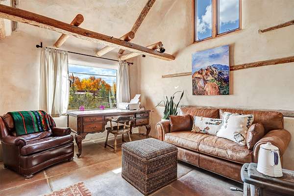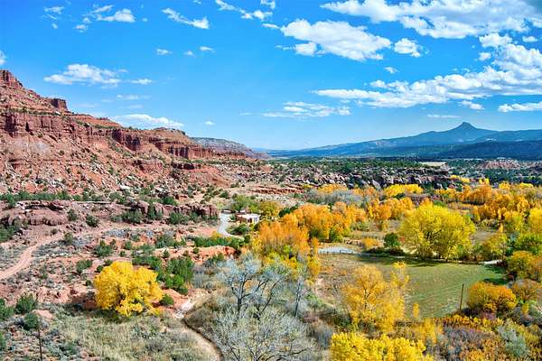 Situated west of Abiquiu Lake in Arroyo del Agua, this 37-acre property offers some of the most stunning views in the Abiquiu area, featuring lush, pastoral fields and dramatic rock outcroppings. The main house, originally built in the early 1900s and updated in 1994, includes passive solar design, vigas and rough-sawn beams, hand-crafted doors and cabinetry, and covered porches in both the front and rear. Inside, the main house also boasts a sunroom, one bedroom with an ensuite bathroom, and an office with a separate bathroom. At the heart of the home is a versatile room with adobe walls finished in a patina of the years past, perfect for a gallery, media room, or an old-style cantina just waiting for a pool table. The charming casita, with its exterior blend of logs and stucco, seamlessly integrates into the landscape. Inside, you'll find a bright kitchen and dining area, a cozy sleeping loft, and a comfortable living space. The studio is well-equipped with two spacious rooms, laundry facilities, and a bathroom. Irrigation rights support over 14 acres of hay production or other farming activities, with ample space for additional fruit trees along the bosque area. The property also includes a barn with a tack room, hay storage, and covered areas for animals or equipment, along with nearby corrals. Just a few minutes on this property and you immediately find yourself lost exploring along the creek and through the fields, or amazed at the rock outcroppings above the buildings until you finally take a moment to soak in the views of the surrounding Jemez Mountains to the south and the iconic Pedernal to the east. Few properties become available that offer the lush greenery and wildness that this one does. Additional photos and information available upon request.