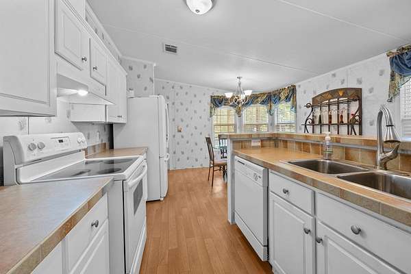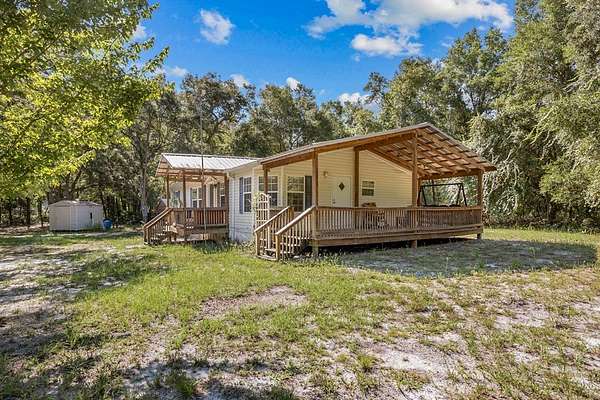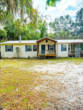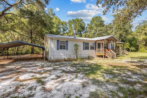 Discover this impressive 2.71-acre property located in Dixie County, just a short drive from the beautiful Suwannee River and nearby natural springs. This beautifully maintained 2006 double-wide mobile home features a fully fenced yard and an open floor plan that seamlessly connects the inviting living room and kitchen, enhancing the spacious feel throughout the living area. The living room is complemented by built-in bookcase shelves, adding both functionality and charm. The island kitchen is a standout feature, perfect for meal prep and entertaining. The master bedroom is spacious and includes a luxurious master bathroom with a garden tub, dual sinks, and a separate shower. Enjoy the comfort of two inviting covered porches--ideal for outdoor relaxation. This home also features a handy shed and a detached carport for your convenience. Situated on a tranquil paved road, just steps away from the end of a peaceful cul-de-sac, don't miss the opportunity to make this serene retreat your own!