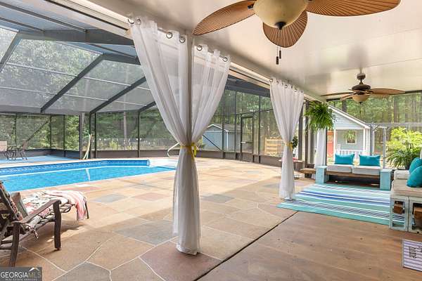 This beautiful, spacious and thoughtfully updated home has everything! 4 bed/ 3 bath w/ Office, Screened Heated Saltwater Pool, Guest Cottage, Chicken coop, Detached Garage, and so much more!!! Read on to see it all....Discover unparalleled country living on this sprawling 2.53-acre retreat set back from the road and hidden through the trees behind a welcoming circle driveway, where every detail has been thoughtfully crafted for comfort, convenience, and enjoyment. The 2,807-square-foot home welcomes you with three generously sized secondary bedrooms on the main level-along with two full baths, a formal dining room perfect for entertaining, and a huge sunroom flooded with natural light. Upstairs you'll find a vast master suite complete with a dedicated home office, a giant walk-in closet, and an expanded master bathroom boasting a double vanity, freestanding soaking tub, and an enormous two-person shower. The living room captivates with exposed wooden beams, a stunning stone wood-burning fireplace, and cozy built-in seating-ideal for family gatherings. Just steps away, the chef's kitchen gleams with granite countertops, herringbone-pattern tile floors, a huge custom-built island, crisp subway-tile backsplash, abundant cabinetry, and top-of-the-line stainless-steel appliances. Chores become a pleasure in the extraordinary laundry room, which offers a deep wash sink, a built-in folding table, custom laundry-basket storage, and space for a secondary refrigerator. Step outside into your private oasis: a saltwater-heated pool framed by a fully screened Apple Enclosure with multiple seating areas for lounging or al fresco dining. A charming cottage with its own half bath provides versatile guest quarters or a quiet workspace, while a 900-square-foot detached garage/workshop offers ample room for projects. Animal lovers will delight in on-site amenities-a chicken coop with generous run, a bunny barn with run, and a goat barn-nestled among fruit trees, grapevines, and blueberry bushes. Cultivate your green thumb in the expansive garden and store tools in the adjacent shed, or simply unwind by the tranquil koi pond .Embrace the best of both worlds with luxurious amenities, pastoral charm, and endless possibilities on this extraordinary property. Owner willing to take down fencing for Bunny Barn if buyer doesn't want to use as such and could easily be converted back to storage. Owner of home is listing agent and holds an Active Real Estate License.