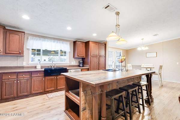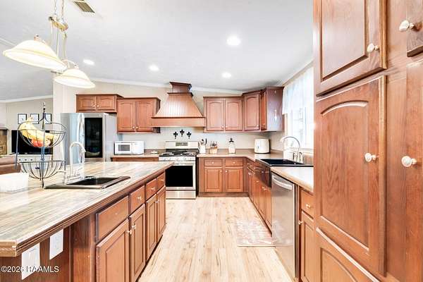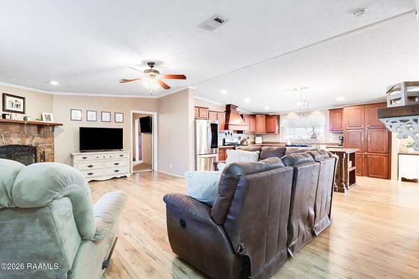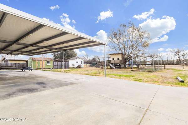 Welcome to your own slice of country comfort in Carencro, nestled on 1.6 peaceful acres in a quiet, serene setting. This 3-bedroom, 2-bath double-wide mobile home is beautifully maintained and packed with features designed for both everyday living and unforgettable gatherings. Step outside to a huge covered patio complete with an outdoor sink, perfect for entertaining, weekend crawfish boils, or simply relaxing while enjoying the calm surroundings. The massive backyard is a dream come true. Kids will love the treehouse with swings and batting cage, while adults appreciate the space to unwind or entertain. The kitchen is a standout with a huge island, large kitchen sink, and abundant cabinet space, opening seamlessly into the main living areas. A spacious laundry room offers dedicated folding and hanging space, adding everyday convenience. You'll also find large bedrooms and bathrooms throughout, including a huge primary suite featuring a garden tub, walk-in shower, and an oversized walk-in closet. The spare bedrooms are also generously sized, offering flexibility for family, guests, or a home office. This property truly shines with its extra spaces: an enclosed workshop plus a versatile she-shed / paint studio / office, perfect for hobbies, creativity, or working from home. Add in tons of storage throughout the home, a huge backyard, a chicken coop complete with chickens and eggs, and the peace and quiet of country living, and you've found a place that checks all the boxes.