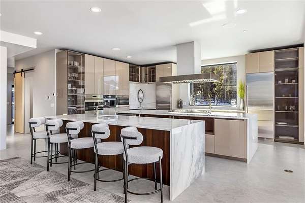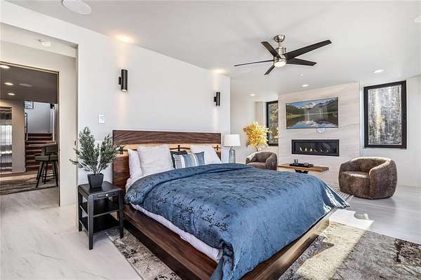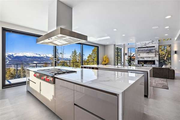 The estate has two private ski runs and rope tow. Bunker Hill Estate - Architecturally Bold. Unmatched Views. One-of-a-Kind. Perched atop Baldy Mtn in Breckenridge's Woodmoor enclave, this modern showpiece delivers panoramic views stretching 19 miles across the Ten Mile Range. No other private estate in Colorado offers this level of visual drama--full alpine skyline, total privacy, and unforgettable sunrises and sunsets. Carved into the mountainside, Bunker Hill Estate boasts its own private ski run with a dedicated rope-tow lift, launching guests into untouched powder directly from the doorstep. Set on 5 wooded acres with private trails for hiking, biking, and snowshoeing, this 6-bd, 7-ba estate spans 7,383 SF across four levels, all accessible by private elevator. Designed for all-season living, the home features a 7-zone EAS Summit Oxygen Bed Head & Wearable system, an altitude-recovery technology roughed-in across key rooms for oxygen-enhanced comfort. Built with ICF (Insulated Concrete Forms), it offers exceptional strength, fire resistance, and soundproofing, supported by a Life Deck AMAC waterproofing system. Luxury finishes include imported Italian porcelain, custom Italian lacquered glass cabinetry and vanities, and Brazilian translucent stone countertops. The chef's kitchen features Sub-Zero fridge and freezer towers, a Wolf tabletop range with wok, Wolf double ovens, a speed oven, Miele coffee system, dual islands, a 45" sink, and a butler's pantry. Outdoor living includes 2,000+ SF of terraces and rooftop space. The "Eagle's Nest" rooftop deck features a TileTechPavers Hex Snow-Melting system and showcases a 10-person hot tub and glass-front sauna overlooking the Breckenridge ski slopes. This is the only home in Summit County offering ICF construction, 5 private acres, imported illuminated finishes, a private ski run with rope-tow, and sweeping views of the entire Breckenridge ski range. Bunker Hill Estate - Bold. Private. Iconic.