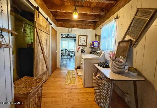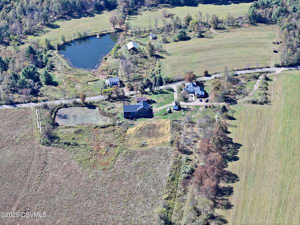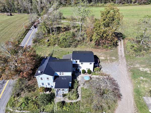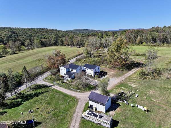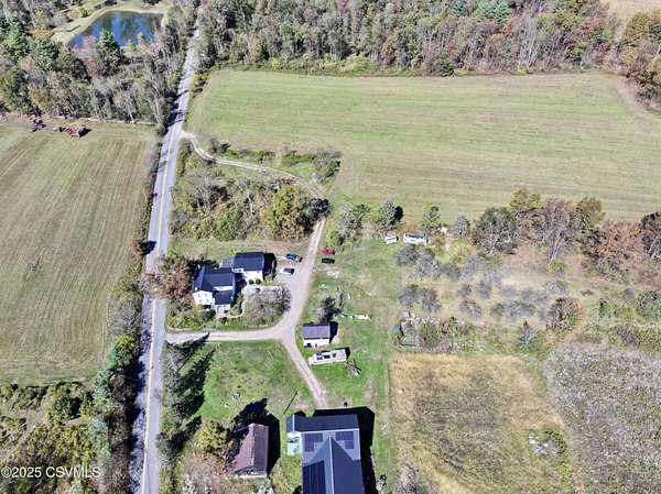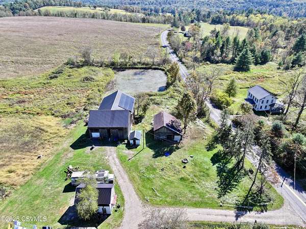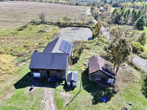 Experience the best of country living on nearly 30 picturesque acres featuring a private pond, large barn, and several outbuildings. This spacious 9-bedroom, 3.5-bath home offers over 4,300 square feet of living space, with part of the residence currently used as an Airbnb--perfect for generating extra income or hosting guests. Located minutes from Ricketts Glen State Park--home to 26 miles of hiking trails and 22 stunning waterfalls, plus fishing and boating on Lake Jean--this serene setting provides privacy, open fields, and room to roam, all within easy reach of town. Ideal for multi-generational living, a hobby farm, or a peaceful rural retreat, this versatile property combines space, versatility, and the natural beauty of Pennsylvania countryside living. Home sold partially furnished.