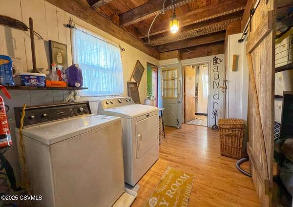- Dryer, Fireplace, Hardwood Floors, Washer, Wood Stove