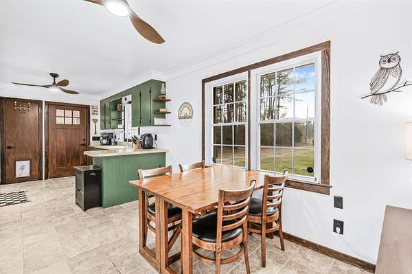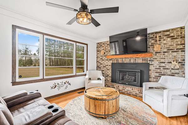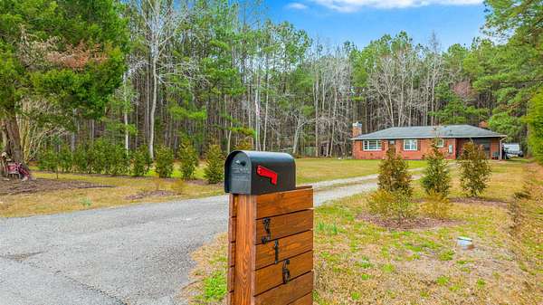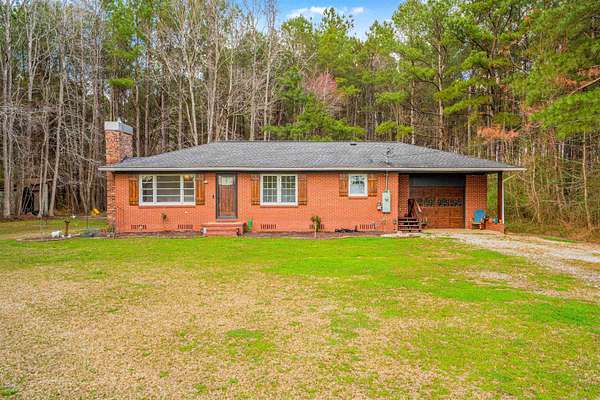 Brick veneer home located in the rural section of Georgetown County, nestled on 13.22 acres of beautiful land with mature trees, a fishing pond, and scenic walking trails throughout the property. Inside, you'll find smooth ceilings and oak hardwood floors flowing throughout the home. The living room showcases a stunning brick fireplace with propane gas logs and a wood mantel, complemented by crown molding and a ceiling fan. The kitchen offers wood cabinetry, double porcelain sink, tile floors, a GE smooth top range, ceiling fan, and a bright eat-in dining area with double windows that fill the space with natural light. Additional living space is provided by the enclosed carport, perfect for a second living area, flex room or recreation space. All bedrooms feature ceiling fans, and the full bath features tile flooring and decorative accent tile walls and includes a glass-door walk-in shower. Don't miss your opportunity to enjoy peaceful country living surrounded by nature, privacy, and the quiet beauty of your own private retreat.