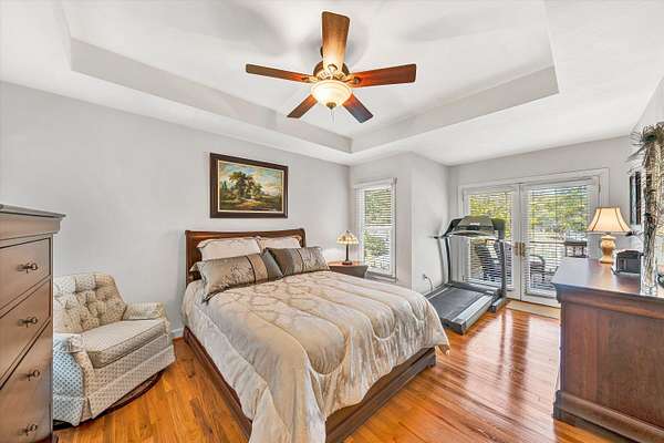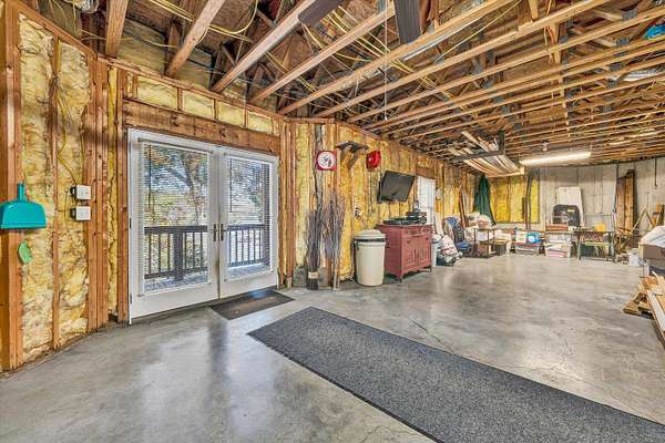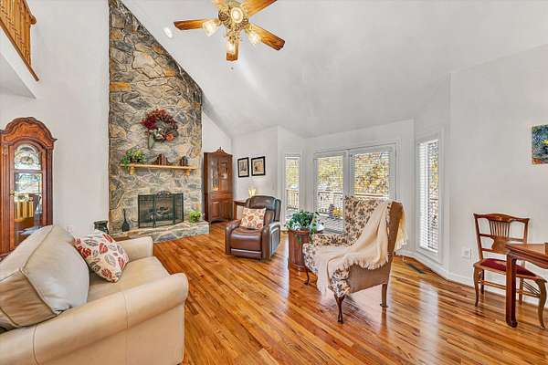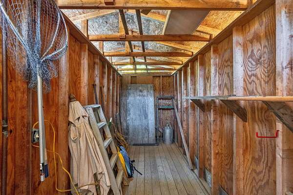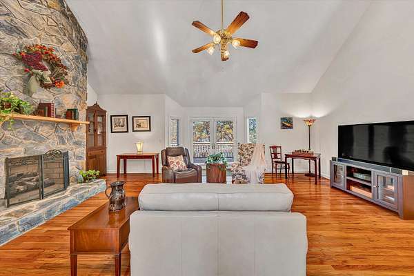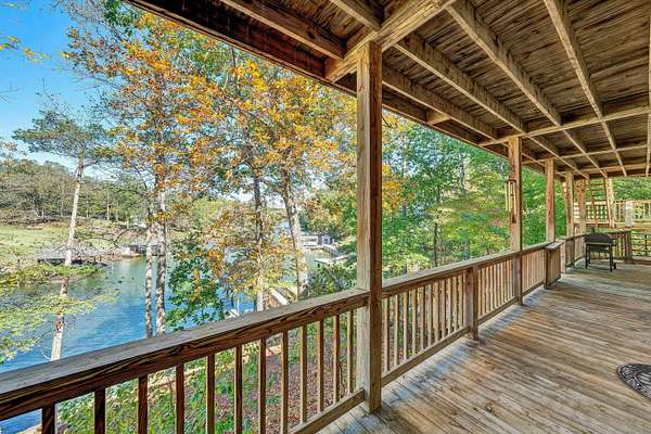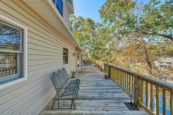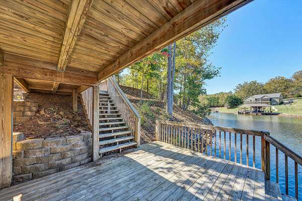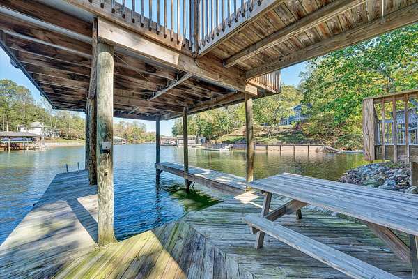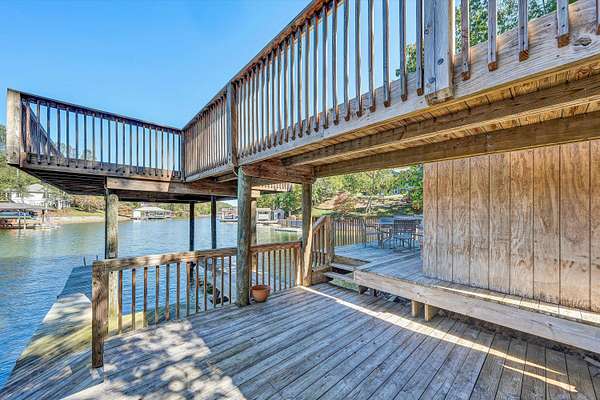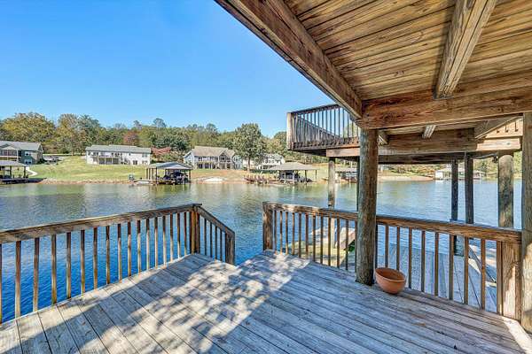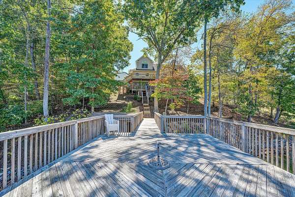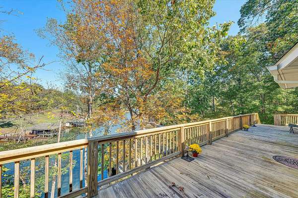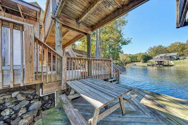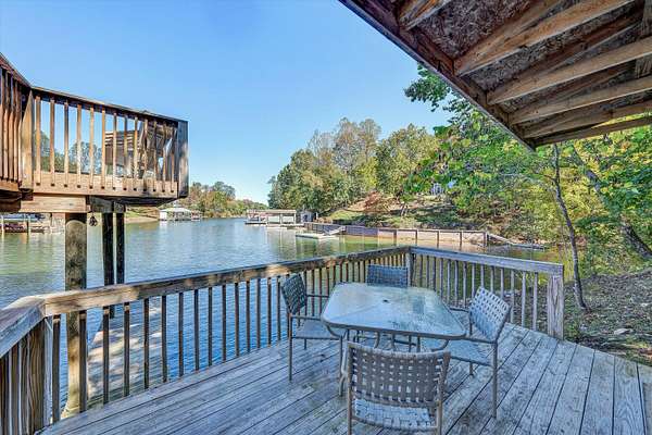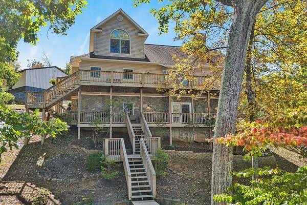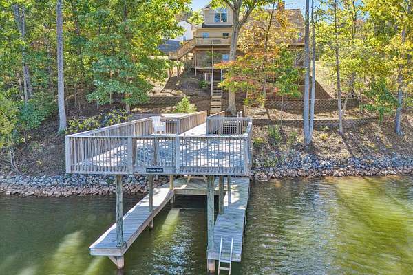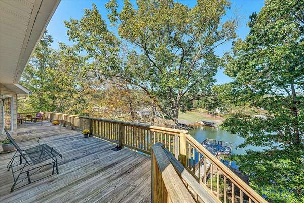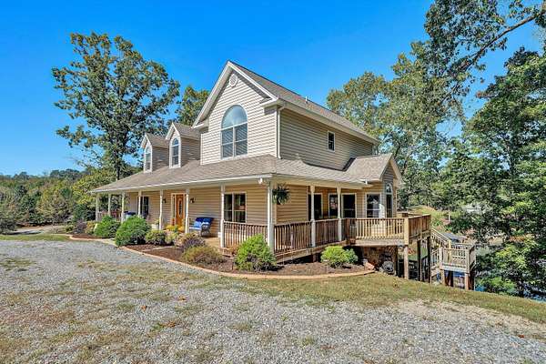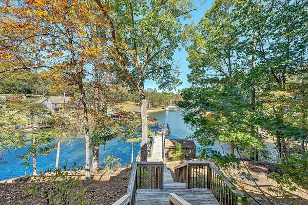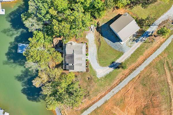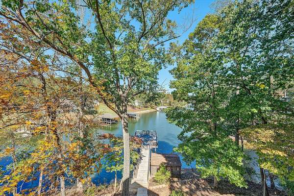 Quiet lakefront living on 8 acres is just a stone's throw from the main channel/ R25. Entry level Primary Br and Laundry! Flawless Wood floors, Andersen French doors, Schrock Cabinets, Spacious rooms, stone floor-to-ceiling Fireplace w/gas logs, 3 1/2 baths, & laundry room w/lake view. Full walkout terrace level is framed-out and ready to finish! New HVAC 2025, Well Bladder 2024, Covered front porch, two deck levels & a roof top party deck at the boat dock. 1600 sq. ft. detached garage has electric lift and air compressor, insulated w/work area & concrete floor! This home is in great condition and shows it has been loved by its owners! 3BR Septic. Maintenance fee for community road is $500 annually. Only minutes by boat or car to West Lake shopping or dining.