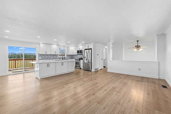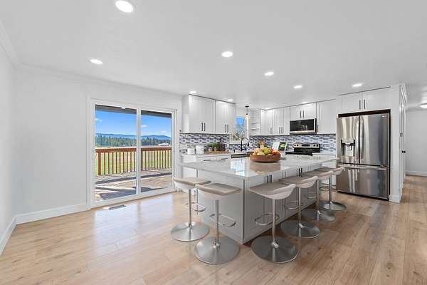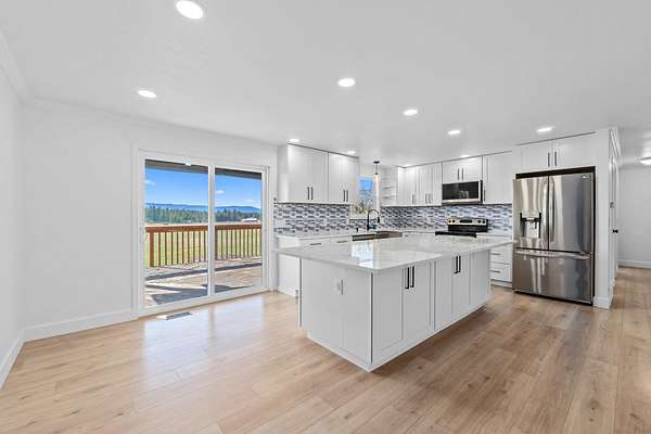 Est $3,285/moTurn-key country living on 9.48 acres with stunning sunset views! This beautifully updated home features a brand new kitchen, fresh interior paint, new flooring upstairs and vinyl windows throughout. Step outside to enjoy the covered deck and new patio, perfect for relaxing or entertaining while taking in the wide-open skies. Property includes a shop and barn with cow feeders, ideal for livestock, hobbies, or your dream mini-farm. Space, upgrades, and views-this one has it all! The well has shared casing with the neighbor but each home has it's own pump and separate piping. Well is located on neighbors property.