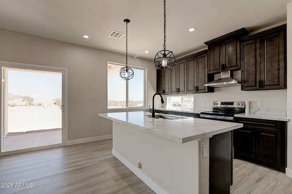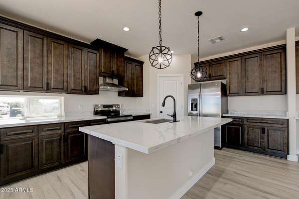 Have you always wanted a ranch of your own? This beautiful newly constructed home rests on a sprawling 1.66 acres with plenty of room for horses & toys! Enter the home through a stunning front door with a spacious great room with high ceilings, recessed lighting, a soothing color palette, and timeless attractive wood-look flooring. Large kitchen has quartz counters, custom wood cabinetry with crown molding, chic pendant lighting, stainless steel appliances, a pantry, and an island with a breakfast bar. The sizeable primary bedroom has a private bathroom, large walk-in closet, and sliding door access to the backyard with a covered patio. Home has bonus features including spray foam insulation, a water softener, the $8K entrance door, and EV connection in the garage. Welcome home!