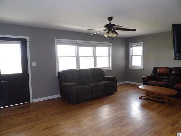 Est $1,020/moCountry living on 3.58 acres with scenic views of surrounding farmland. This 3 bed, 1 bath home features hardwood floors, a full basement with approximately 670 sq ft of finished space, and an attached single-car garage. Freshly painted cabinets in the large kitchen. Newer HVAC. Plenty of room to enjoy the outdoors while still having functional living space inside.