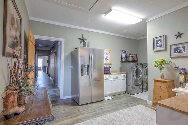 Uncover the home you've always envisioned! This open-concept, ranch-style residence boasts four bedrooms, including one non-conforming room, with two featuring en suites. Throughout the property, you'll find wood-look tile flooring, luxury vinyl in two bedrooms, and beautiful wood flooring in the remaining two, complemented by tile in all the bathrooms. A generous laundry room is paired with an oversized pantry for added convenience.