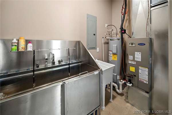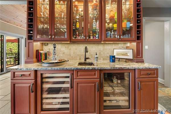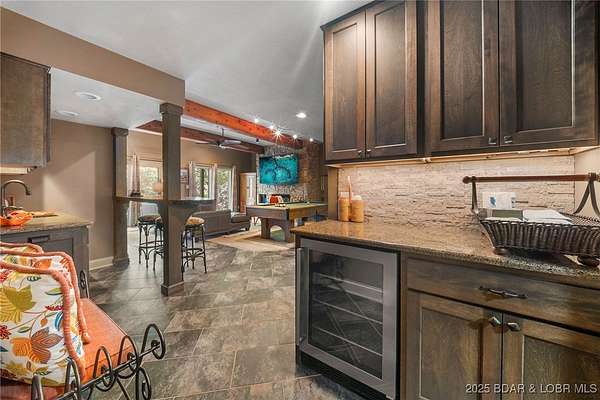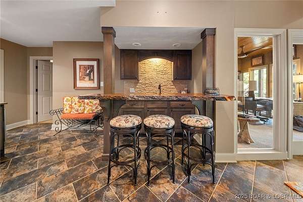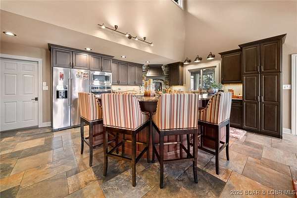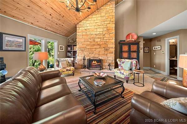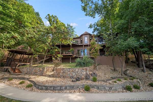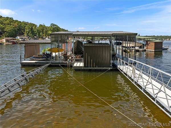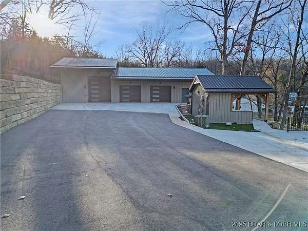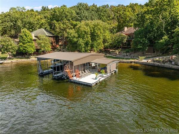 This one-of-a-kind property perfectly blends lakefront living with the charm of a working ranch. The lakefront portion comes fully turnkey and features a beautiful 4-bedroom, 3-bath, 3,800 sq. ft. home on a flat lot. An oversized detached garage offers 3 bays (2- 10x8 & 1-10x12), an electric car charger, Dog Wash Station plus a gorgeous 357 sq. ft. 1-bedroom, 1-bath guest suite. Outdoor living is a dream w/ a firepit area, 16x16 grilling pavilion, multiple lakeside seating areas, a serene waterfall, & well-manicured landscaping. A massive concrete dock includes 2 slips, covered PWC slips, and an oversized swim platform-all cove-protected at the 1-mile marker of the Gravois Arm. Across the street, you'll find 48 acres of scenic land with a 3-bedroom, 2-bath, 2,200 sq. ft. farmhouse, barn, RV pad, well-maintained riding trails, ponds, and a mix of open pasture and wooded areas-perfect for hunting, horseback riding, or simply enjoying nature. All of this is just a short walk from one of the lake's premier swim-up pool bars and restaurants-Tap & Grill. Opportunities like this are incredibly rare-don't miss your chance to own a truly unique piece of Lake of the Ozarks living!