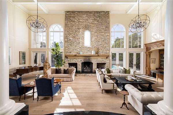 Welcome to 31632 Trigo Trail, an extraordinary 9,500-square-foot, 7 Bedroom/7Bathroom estate nestled on 2.5 acres of pristine land within the exclusive Los Ranchos Estates enclave, part of the highly sought-after, guard-gated community of Coto de Caza. Offering the pinnacle of privacy and elegance, this magnificent property is secured behind its own private gate. As you approach, a beautifully manicured front yard and graceful circular driveway guide you to a stately porte-cochere, setting the tone for the opulence that awaits within. Step through the grand entrance into an impressive foyer featuring a sweeping staircase bathed in natural light, creating a breathtaking first impression. The expansive formal sitting room is designed for sophisticated entertaining, showcasing rich wood floors, a striking floor-to-ceiling fireplace, exquisite designer chandeliers, and a stunning entertainment bar. The gourmet chef's kitchen offers a generous center island with bar seating, premium stainless steel appliances, and panoramic views of the lush grounds and sparkling pool make this kitchen a masterpiece of style and functionality. Adjacent to the kitchen, a charming breakfast nook accented by a cozy fireplace offers a relaxed dining experience, while a connecting room enhances the home's open and airy ambiance. Conveniently located on the main level, the luxurious primary suite exudes tranquility and grandeur. Wood floors, a warming fireplace, and picturesque views of the estate's lush landscape create a true retreat. The spa-like primary bathroom features dual vanities, a dedicated makeup area, a spacious walk-in shower, and a soaking tub. Also on the first level you will find an elegant office detailed with woodwork, coffered ceilings, custom built-ins, wood flooring, and its own fireplace. Upstairs, all secondary bedrooms are generously sized, each boasting private balconies with breathtaking views of the surrounding hillsides and mountains. This level also offers a versatile bonus room and a refined library, perfect for relaxation or study. The estate's outdoor oasis is equally impressive, featuring a private pool and spa, a welcoming outdoor room complete with a fireplace and heaters for year-round enjoyment, a sprawling grass area, a bocce ball court, and so much more--offering endless possibilities for recreation and entertaining. Furnishings are optional. 31632 Trigo Trail offers the finest luxury living Coto de Caza has to offer.