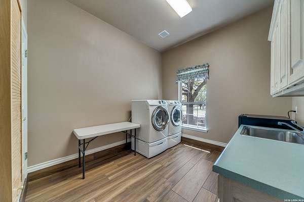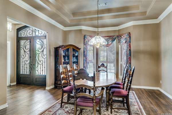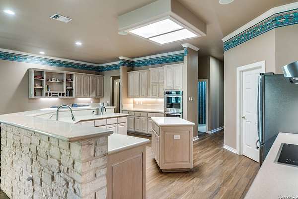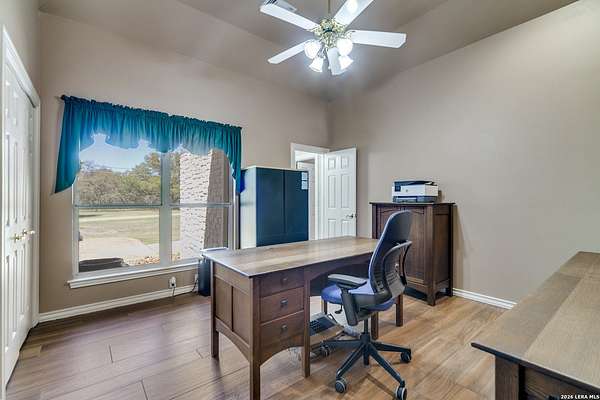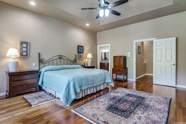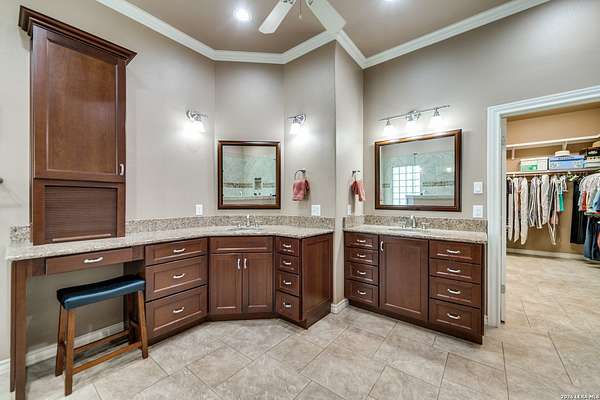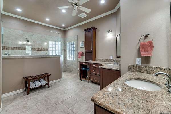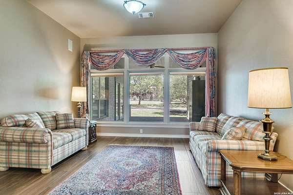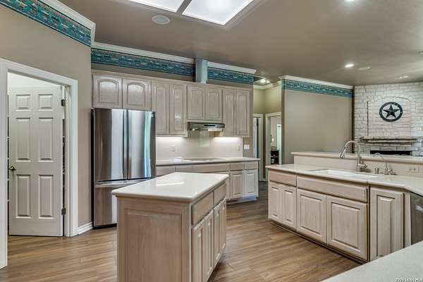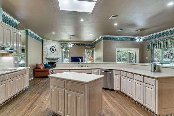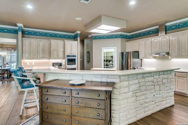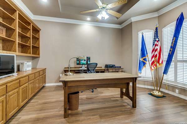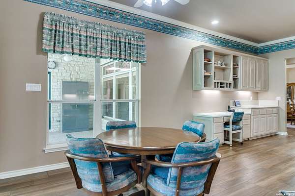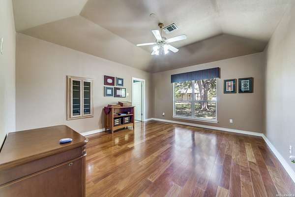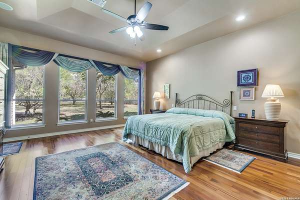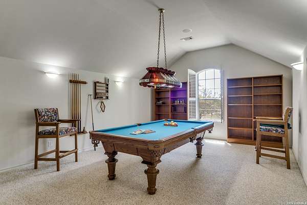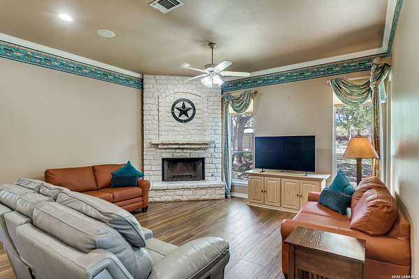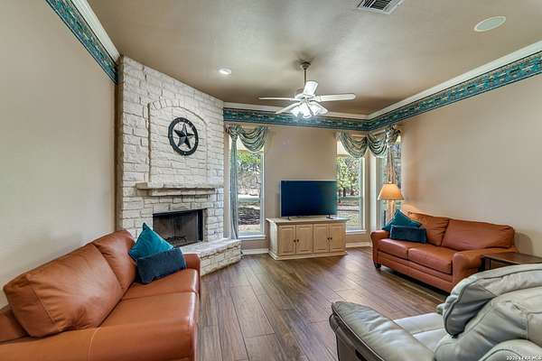 Nestled within the highly sought-after Fair Oaks Ranch, this stunning 1.6-acre property offers the perfect blend of space, comfort, and natural beauty. A welcoming circular drive and mature trees create a picturesque first impression, setting the tone for everything this exceptional home has to offer. As you step inside, you're greeted by a thoughtfully designed layout featuring a private office, an oversized formal dining room, and a cozy sitting room. These spaces seamlessly flow into the heart of the home, an expansive open-concept living area. The living room is anchored by a striking floor-to-ceiling stone fireplace, while the large kitchen is a true centerpiece, complete with a spacious island, abundant cabinetry, a walk-in pantry, and a separate breakfast area ideal for casual dining. The primary suite is a private retreat, offering a luxurious en suite bathroom with separate vanities, a large glass walk-in shower, and an expansive closet with built-in shelving. A secondary bedroom features its own en suite bathroom, while the third and fourth bedrooms are connected by a convenient Jack-and-Jill bath. All bedrooms are located on the main level, providing ease and accessibility. Upstairs, you'll find a versatile game room, perfect for entertainment or relaxation. Additional highlights include a dedicated laundry room and a charming sitting area just off the breakfast nook that leads to a covered patio. Step outside to enjoy breathtaking bluff views surrounded by mature trees, creating a serene and private backyard oasis. The property also includes a detached workshop/casita with a separate garage designed for a golf cart, along with an attached two-car garage and a third attached, air-conditioned garage space that can serve as a workshop or hobby area. For added peace of mind and convenience, the home is equipped with a propane-powered Generac whole-home generator, ensuring reliable backup power when needed. This home offers a rare opportunity to enjoy peaceful, spacious living with thoughtful design and exceptional amenities in one of the area's most desirable communities.