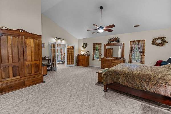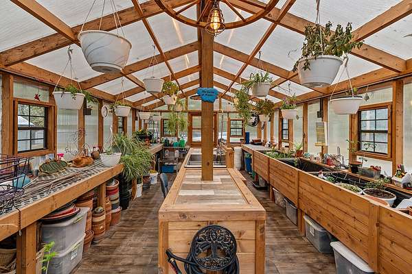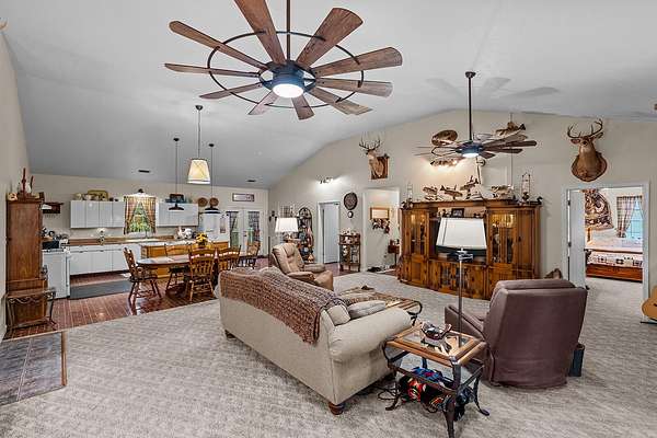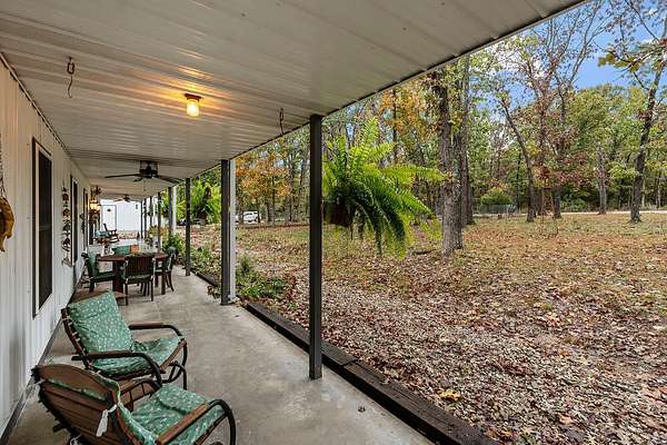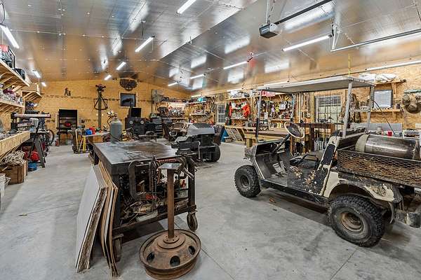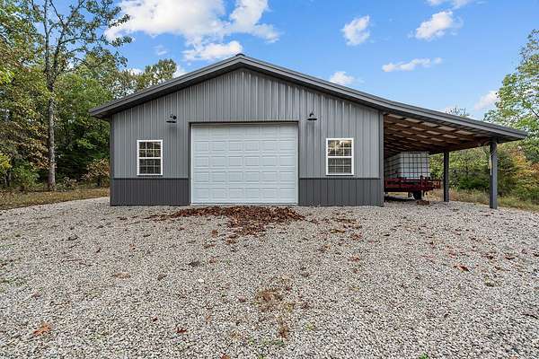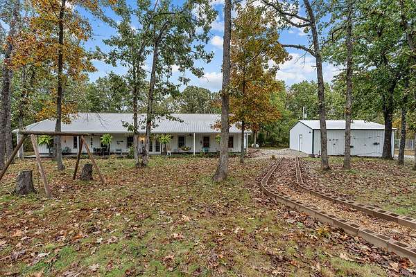 Welcome to the ultimate rural retreat! This stunning & incredibly well maintained 3,200 sq ft home sits on 10.5 acres, offering the perfect blend of comfortable living, serious hobby space, and incredible outdoor utility. Inside the home it offers unrivaled space and 13' ceilings! Dual zone HVAC and NEW Pellet stove. The primary suite is extremely spacious and has a sunroom attached that has been used as a sewing room but could be used for about anything. The front and rear of the home have covered porches going the full length of the home. The home was built to last with slab foundation, metal roof, and metal siding. The attic space is HUGE, fully floored and sheet rocked. Moving outside there is a picturesque 14' x 22' Greenhouse with running water, and electric. Also on the property is a fully insulated 30'x50' shop that includes concrete floors, 220 power, wood stove, and forge. Exiting the shop, you'll notice the pond down the hill. Moving onto the last structure on the property it has been used as a dog run/house but would also make an incredible chicken coop! All of this is located just over a mile from the boat ramp on the pristine Pomme de Terre Lake. This property is an outdoor lover's paradise!