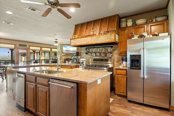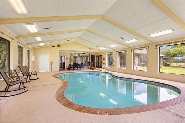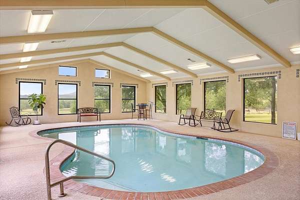 Nestled on 20 acres of gently rolling landscape this ranch style country home has much to offer. Entering through a gated entrance this ag exempt, fully fenced property is cross fenced, has multiple loafing sheds, working pen, a 30' x 40' workshop with 200 amp power and 15' x 40' attached lean to shed. Property has 2 stock ponds, each with their own fishing pier, is suitable for cattle, goats, horses and more. This rock home is 5900 sf, offers a total of 5 bedroom, 5 and half baths. As you enter the home you are greeted with open concept living, kitchen, and dining areas, a beautiful rock fireplace, large framed windows that overlook a large covered back porch, great for those early morning coffees. The large master suite includes a dual sink master bath with claw foot tub and walk in shower, with ample closet and cabinet storage. The 30'x40' indoor pool room, accessible from the master suite and back porch, includes a 3' to 5' deep heated gunite pool and a full bath, is a great addition for entertaining friends, kids, and grandchildren, hosting parties of all kinds, etc. The large kitchen includes granite counters, kitchen bar, center island, ample cabinet storage, large gas range, ice maker, and more. The two dining areas provide plenty of room for those large family gatherings. Home includes a guest suite with bedroom, full bath, wet bar and its own private entry. One of the dining areas could readily be used as a living room for the guest suite. Second floor of the home includes a living area or game room area, a bedroom with its own in suite bath, and two additional bedrooms that share a jack n jill bath. Ample covered parking includes the 2 car attached garage and 2 car attached carport with golf cart port.Two water wells assure ample water supply. Located in Somervell County and the highly rated Glen Rose School Dist, this country living ranchette is within minutes of Glen Rose, Granbury, and Stephenville, offering easy access to many of life's conveniences.