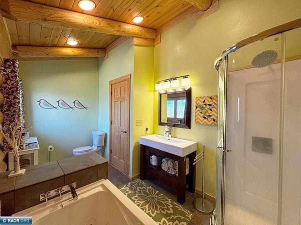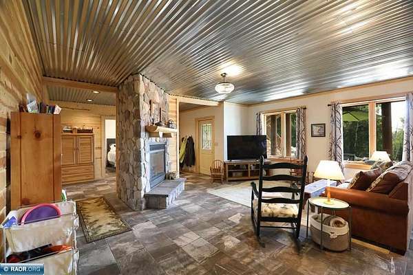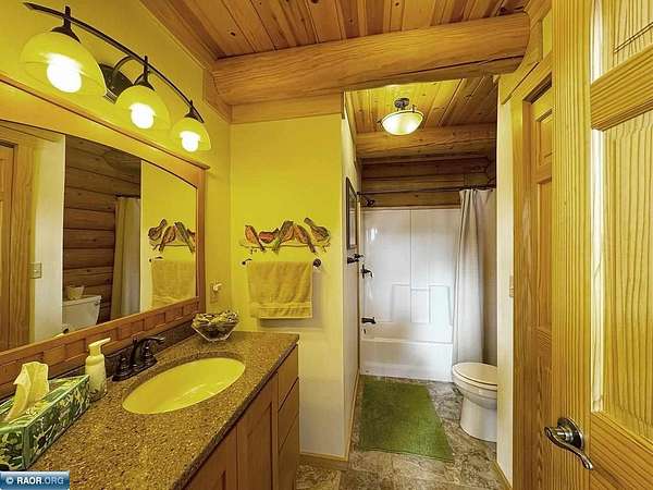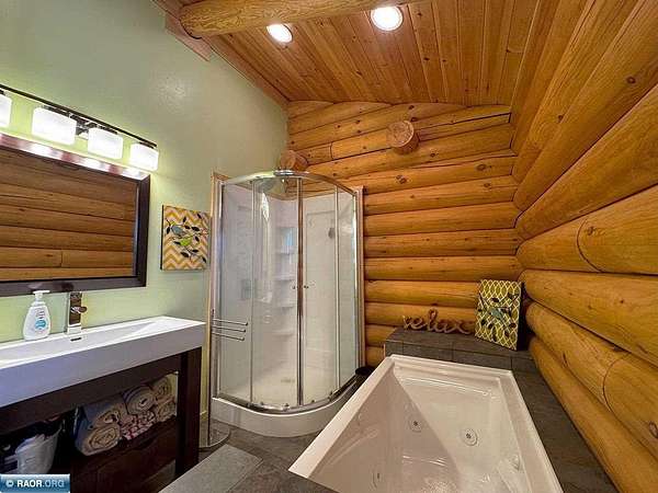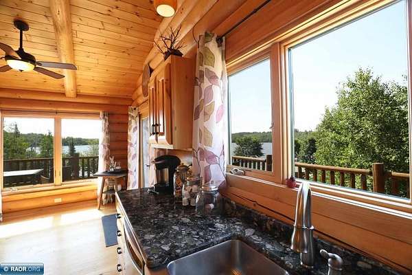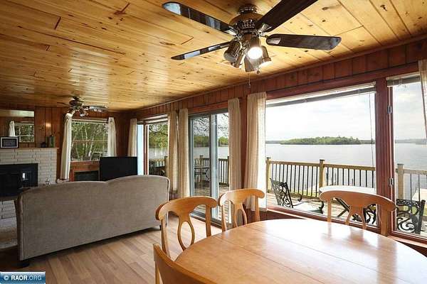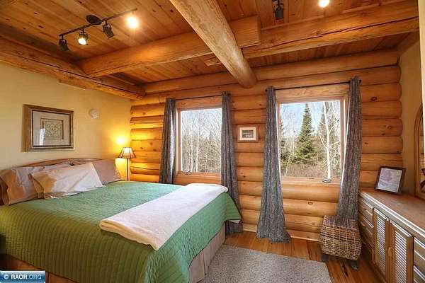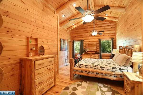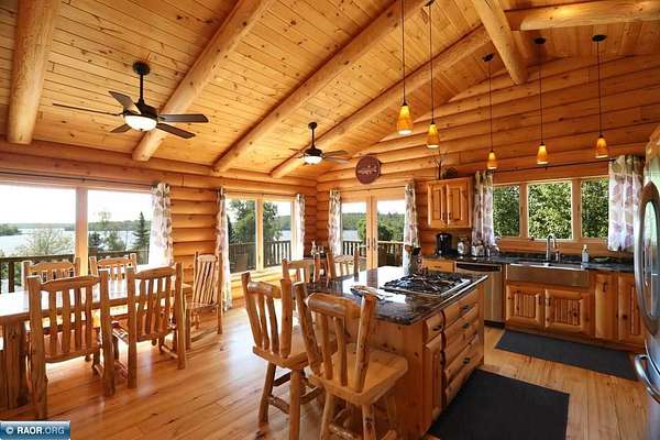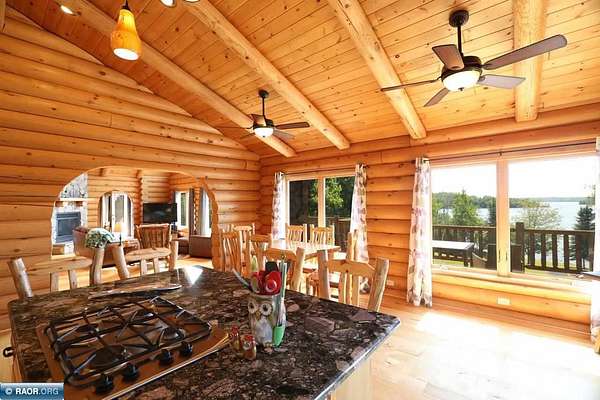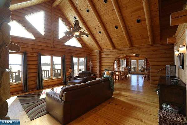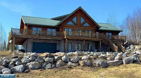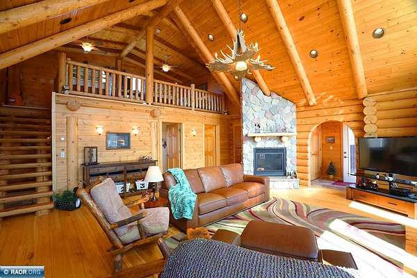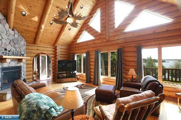 Est $11,838/moLake Vermilion Log Home: Rare South Facing 3+BR, 3 BA, Like New 3287 SF Voyageur Log Home, Yr Rnd 2+BR Guest Cab W/Own Well & Septic, Att & Det Gar, Boathouse, 2.5 Acres & 362 Ft Shore W/Island Studded Views of Wolf Bay! Granite/stainless lakeside kitch w/island open to glassed dining & two story great rm w/flr to ceiling Anderson windows, stone gas firepl, Hickory flr, glass drs open to wrap deck. Main flr: Luxurious primary suite, guest BR & BA, sunroom. laundry. Log loft. Walkout LL offers tuck under garage, guest BR & sauna BA, rec rm w/stone gas firepl open to lakefront patio. In flr heat, drilled well, backup generator. Metal roof. Access Broadband internet. 3 docks. Please review features sheet & click links for 3D Tours!