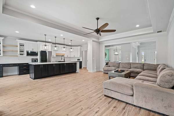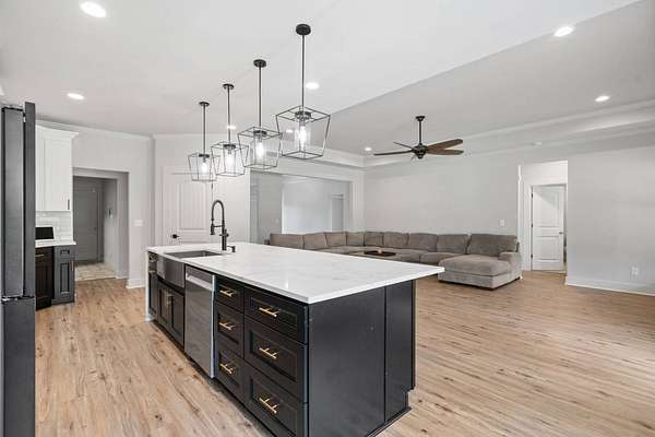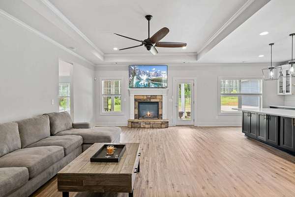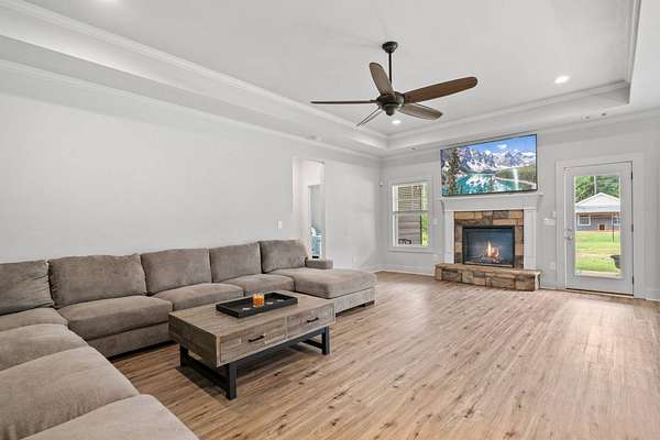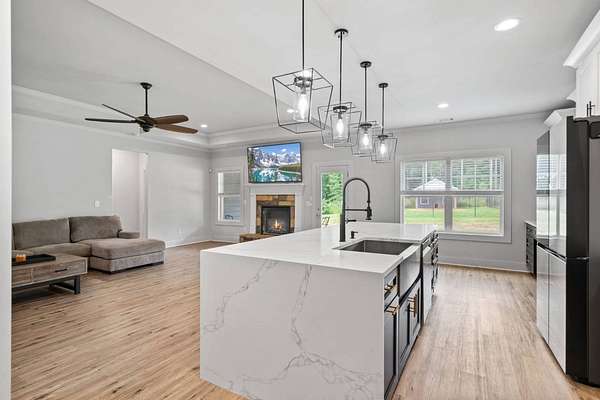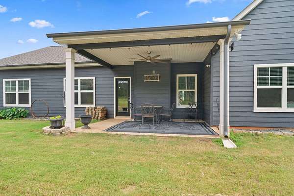 BUY THIS HOME FOR AS LITTLE AS $5,150 DOWN PAYMENT! SPECIAL 5.25% INTEREST RATE FOR Those who qualify! BUY THIS HOME & WE'LL BUY YOURS!* $10,000 TOWARDS BUYERS CLOSING COSTS w/Preferred Lender! STUNNING CUSTOM FINISHED 4BR/3BA L U X U R Y HOME on Nearly 2 Acres of PRIVATE, PRISTINE Land! Built at theend of 2019, this Home offers the PERFECT COMBINATION of MODERN LUXURY and THOUGHTFUL DESIGN. BUILT IN EQUITY $$$ because theSeller has added around $150,000 Worth of Upgrades. From the moment you step onto your EXQUISITE Covered Front Porch, Youwill FEEL the CHARM & WARMTH that this One of a KIND Property offers. You are Welcomed by Soaring Ceilings, Custom Lighting throughout, Brand NEW LVP Flooring, and an OPEN and INVITING Floorplanthat FLOWS Seamlessly. NEW CARPET, NEW (Interior & Exterior) PAINT, 6" Upgraded Baseboards , NEW WINDOWS & Hardwired LANDSCAPE LIGHTS Leave You WANTING FOR NOTHING~~The DESIGNER CHEF'S KITCHEN is truly the DIVINE STATEMENT that you've ALWAYS Dreamed of Having in a Home. Featuring a BREATHTAKING 13-FOOT TOP OF THE LINE WHITE QUARTZ W A T E R F A L L ISLAND, PREMIUM GRADE TAILOR-MADE CABINETRY, EXQUISITE Gold Fixtures, DESIGNER Pendant lighting, and CUSTOM Built In BAR Cabinets!!, The Kitchen Opens to the HUGE Family Room and boasts a COZY Fireplace, Creating the PERFECT Space for Entertaining. Private DINING ROOM Speaks Volumes in Sophistication. The Owner's Suite w/Double Tray Ceiling is a RETREAT in itself. SPA INSPIRED En SuiteFlaunts Floor to Ceiling TILED Shower, Soaking Tub, and Oversized Walk-In Closet. The Split-Bedroom layout is IDEAL for Multi-Generational Living. Step Outside to your PRIVATE BACKYARD OASIS. A CUSTOM MADE DETACHED LUXURY BARN/GARAGE is Fully Equipped with Heating, Air, Electricity and Plumbing!! MODERN Upgrades inside include LVP Flooring and Ceiling Fan - PERFECT for a WORKSHOP, MAN CAVE or SHE SHED!! A SECOND Detached Structure w/PLUMBING & ELECTRICITY Offers even more Flexibility for Your Animals or ANY Creative Use that Your Heart Desires. This home is a RARE FIND - Offering Land, Luxury, and Endless Opportunities ALL IN ONE. NO HOA! 24 MONTH BUY BACK GUARANTEE FOR ALL VIP BUYERS!