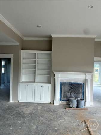 - Bathtub, Double Vanity, Entrance Foyer, Fireplace, Kitchen Island, Main Level Primary, Pantry, Pull Down Attic Stairs, Separate Shower, Split Bedrooms