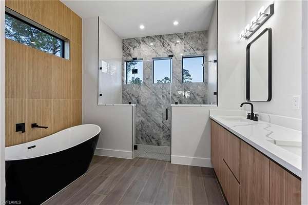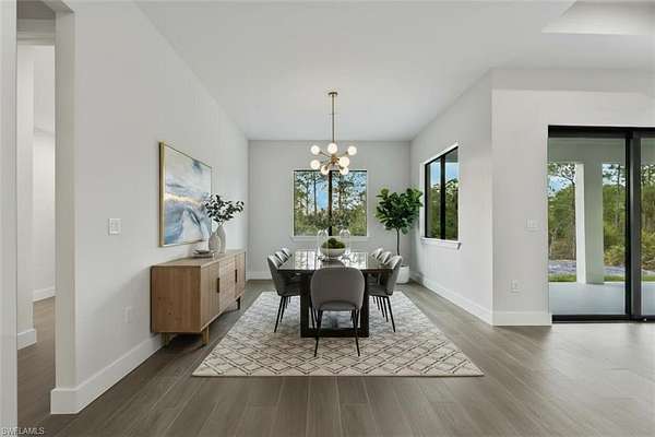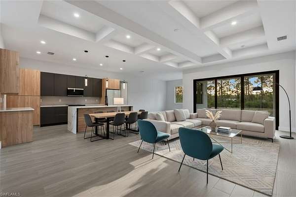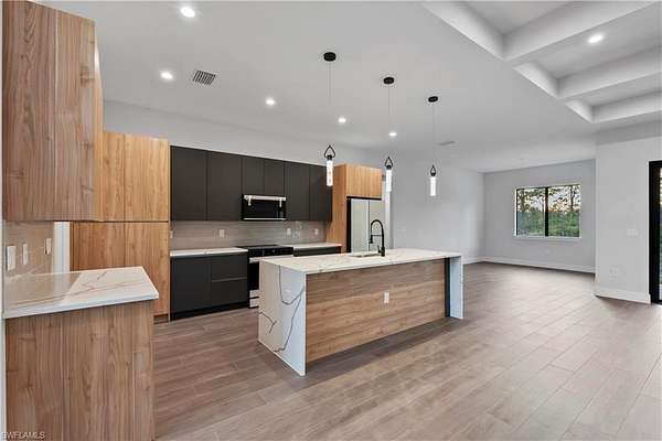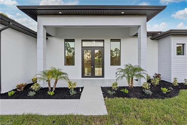 Welcome to this charming modern new residence, no restrictions, just peace of mind. This thoughtfully designed home with 3 spacious bedrooms, a private office, and 2 full bathrooms, combining comfort, elegance, and functionality. The open-concept floor plan is filled with abundant natural light, creating a warm and inviting atmosphere throughout the home. At the heart of the home is a custom-designed kitchen featuring premium appliances and a striking quartz waterfall island, seamlessly connected to the dining and living areas - great for entertaining and everyday living. The entire home is finished with upgraded tile flooring, delivering a sleek, modern look with easy maintenance. Step outside to your lanai, relax or host gatherings. This home also includes impact-resistant windows and doors, gutters, sprinkler system, 6-inch baseboards, upgraded tile selections, and countless additional upgrades - truly too many to list. This exceptional property blends style, durability, and modern design, making it a standout choice for today's buyer. Photos are from a previously completed home by the same builder and similar finishes.