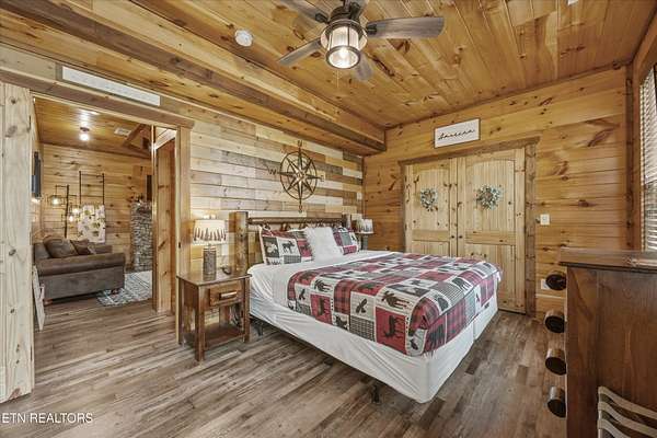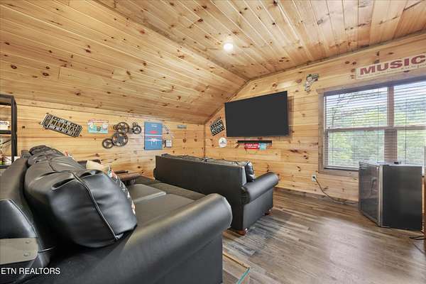 The third-floor loft is an entertainer's dream -- complete with a movie and game room that provides the ultimate space for family fun and memory-making. Whether you're hosting game nights or relaxing with a film, this space is the heart of the cabin.