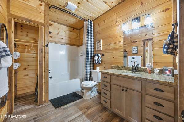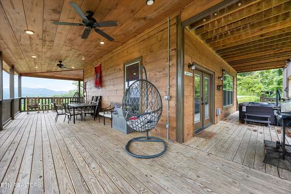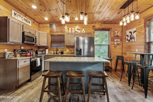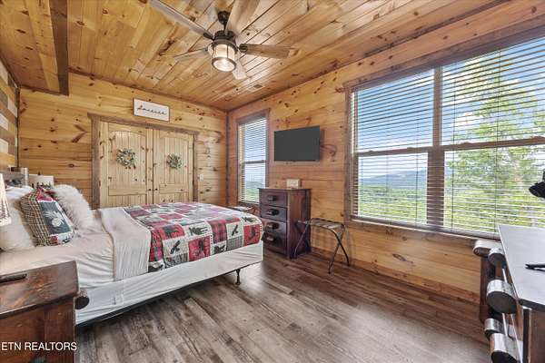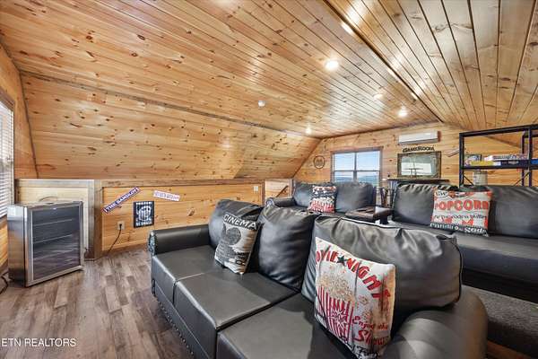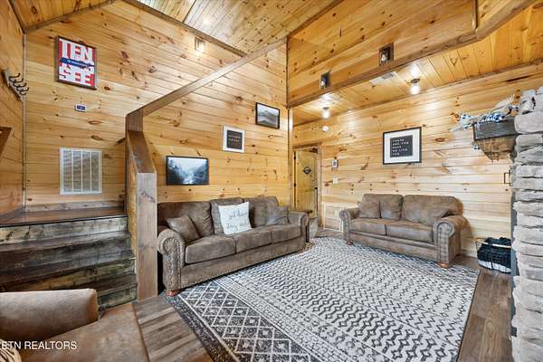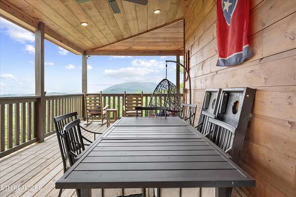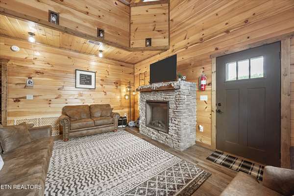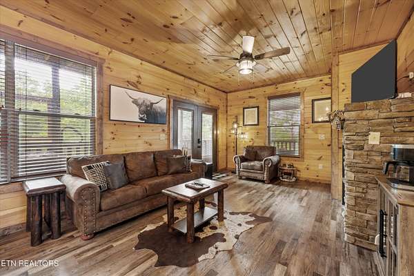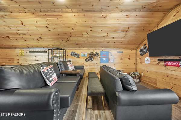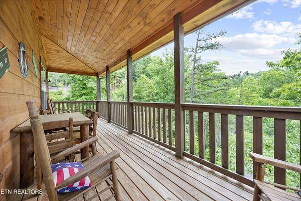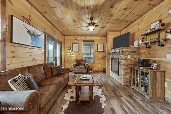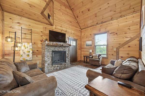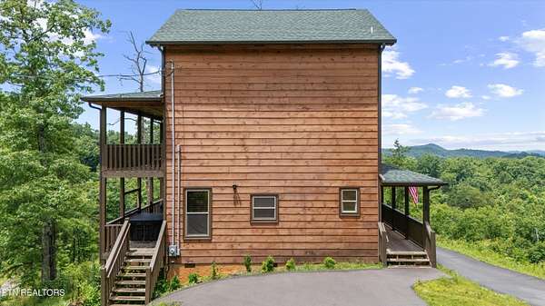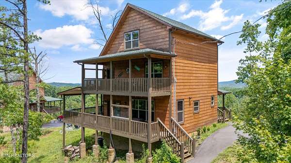 Escape to the Smokies in style with this beautifully 3-level luxury cabin nestled in a serene and private location, yet just minutes from the excitement of Pigeon Forge and Gatlinburg. Boasting amazing views this fully furnished retreat blends rustic charm with modern comfort - perfect as a an income-producing short-term rental. Step inside to an open-concept main level featuring a warm, inviting living room with a stone fireplace, dining area, and well-equipped kitchen - all designed to capture the stunning mountain scenery just beyond the expansive windows. The main-level primary suite is spacious and serene, offering a private bath for ultimate relaxation. On the 2nd level you'll find a second cozy living room with a fireplace, a generously sized guest bedroom, a full bathroom, and a flex room ideal for an office and more. The third-floor loft is an entertainer's dream - complete with a movie and game room that provides the ultimate space for family fun and memory-making. Whether you're hosting game nights or relaxing with a film, this space is the heart of the cabin. Outside, a huge covered deck invites you to unwind with a morning coffee or evening glass of wine while soaking in panoramic mountain views that will take your breath away. If you're looking for privacy, luxury, and proximity to the best of the Smokies this is your opportunity to own a piece of East Tennessee paradise. Schedule your personal tour. Information to be verified by buyer.