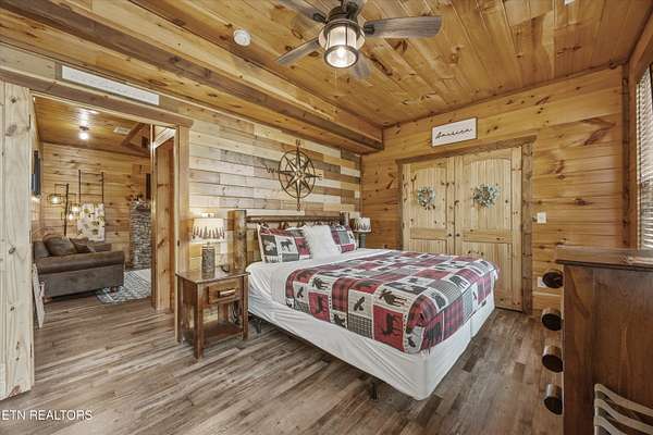 From Dolly Parton Pkwy, turn onto Long Springs Rd. In 2 miles, turn right onto Jones Cove Rd. In 3.7 miles, turn right onto Dixon Branch Rd. In .5 miles, turn left onto Bear Mountain Ln. In .3 miles keep right onto Bear Mountain Ln, in .7 keep left, and .3 keep right to stay on Bear Mountain Ln. In .6 miles, cabin will be on the left.
