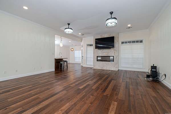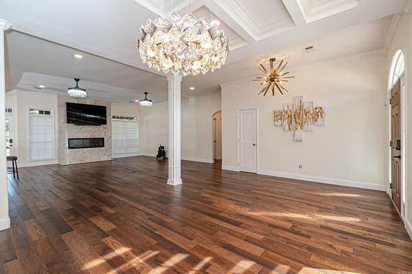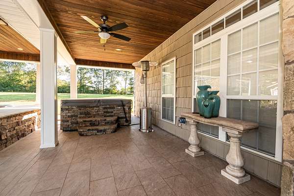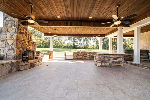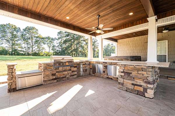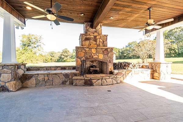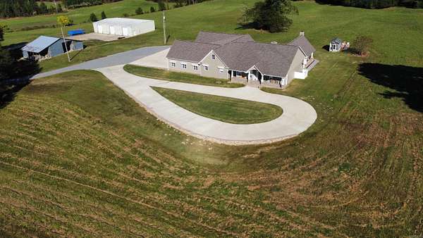 Discover the perfect blend of luxury and privacy with this stunning 3-bedroom, 2.5-bath home on 20.28 beautiful acres. With 4,172 sq ft of living space, this custom-built property offers exceptional comfort and functionality. The kitchen is a chef's dream with granite countertops, gas range, ice maker, and custom lighting, while the formal dining room features a coffered ceiling. A spacious butler's pantry adds convenience and storage. The laundry room includes custom built-ins, sink, desk area, and mudroom, plus there's a utility closet with built-ins and a safe room for peace of mind. The living room boasts an electric fireplace and open layout. The master suite offers a private retreat with walk-in shower, soaking tub, dual vanities, and a custom closet with dressing area. Outdoors, enjoy a large outdoor kitchen, greenhouse, pond, and workshop. The attached 4-car garage provides additional storage. A rare find combining craftsmanship, thoughtful design, and scenic acreage!