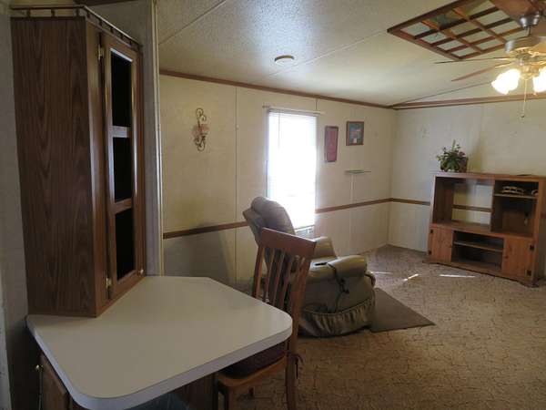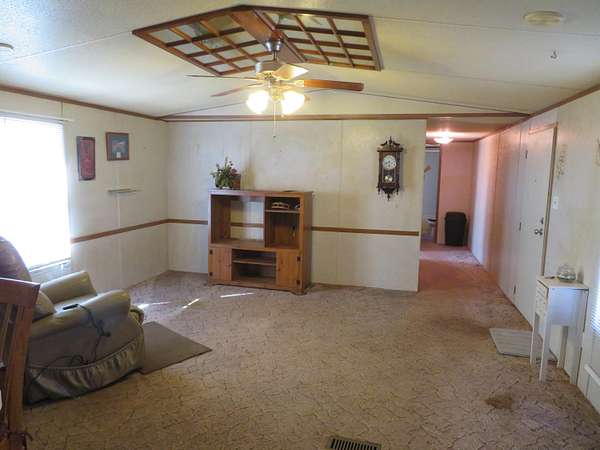 A rare find in today's market this is a nice 3 bedroom 2 bath mobile home setting on 3 acres. There is a very nice heated garage/workshop with 2 large rollup doors, concrete floor and plumbed for your air compressor. Several storage buildings, an in ground safe room, pasture room for a few head of livestock, an older serviceable chicken coop, and garden spot. This property is located just outside the city limits and adjacent to the city park. There are two older homes on this property in which no value was placed. Property is being sold to settle an estate so being sold as is.