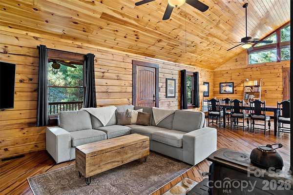 FIONA'S FOREST HAVEN is FOR SALE! Located in the quiet gated community of HEARTHSTONE RIDGE just North of Rutherfordton NC and only a short drive from Lake Lure, Chimney Rock, Tryon, Hendersonville, and Asheville. It is a very quiet area with paved roads and a gravel driveway leading through the woods to this well-appointed two-bedroom, 1.5-bath log cabin, perfect to relax, unwind, and enjoy nature. *You'll enter the front of the cabin from the wrap-around deck, through French doors, into the spacious great room. The fully functional kitchen has everything you need to prepare your meals. There is ample seating in the dining area that adjoins the kitchen. Just off the dining area is the relaxing living room, complete with a wood-burning stove for those extra chilly nights. There is a large laundry room with a washer and dryer right off the kitchen, leading to a lovely, screened porch perfect for your morning coffee or an after-dinner glass of wine. A gas grill sits just outside the screened porch for easy access to the kitchen. A lovely fire pit and outdoor sitting area complete the backyard. *The Main Bedroom accommodates a King bed and large walk-in closet and is just off the living room. A Jack-and-Jill bathroom with a tile shower separates the Master Bedroom from the Guest Bedroom. *The back/side yard is completely fenced in for those with pets. Secluded from the street and any neighboring properties, provides peace and tranquility. *Just a minute's drive away is HEARTHSTONE PARK, where you will find swings for the children, a basketball goal for some exercise, picnic tables, a gazebo by the creek, and a covered pavilion for large gatherings. The neighborhood is complete with a quarter-mile nature trail and walk that reveals a gorgeous view of Mount Mitchell and the Western North Carolina Blue Ridge, a jewel in the crown of the Appalachian Mountains. ***Currently on a Vacation Rental program with Carolina Properties in Lake Lure.