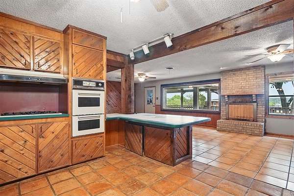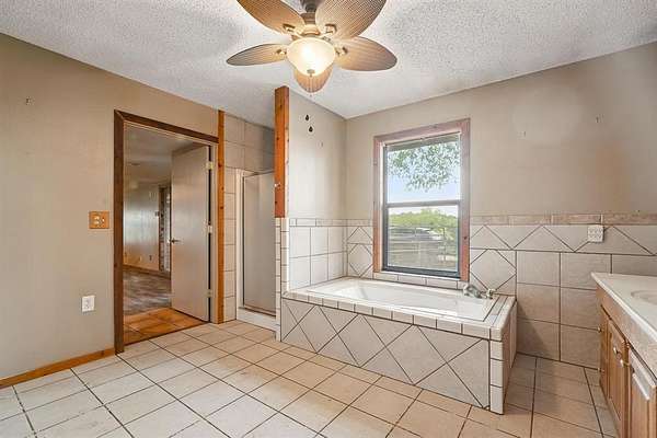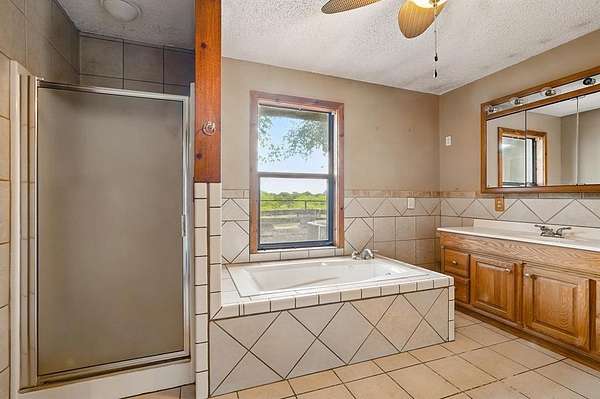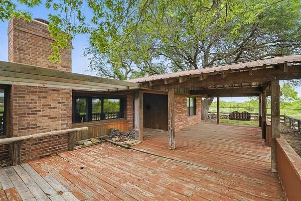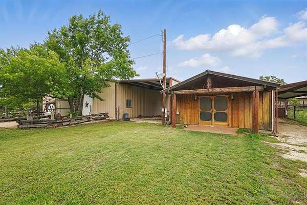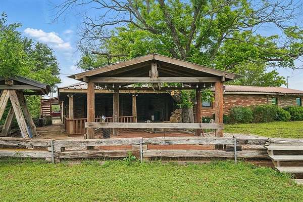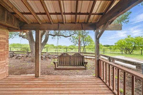 Discover the perfect blend of rustic charm and modern convenience in this stunning 10.1-acre Texas ranch retreat. The spacious 3,368 sq. ft. main home features 3 bedrooms, 3.5 baths, Saltillo tile in the kitchen and living areas, and laminate flooring in the primary suite. Enjoy three living areas, full-sized picture windows capturing panoramic views, and a cozy wood-burning fireplace. The large primary suite offers a walk-in closet, Jacuzzi tub, separate shower, and an enclosed patio for private relaxation. Step outside to an entertainer's dream with an expansive back patio, landscaping, and mature oak trees. Property highlights include a storm cellar, barn with hayloft, 3+ stalls, tack room, additional detached stalls, arena, holding pens, tank, water well, shop with electricity, RV parking with two 50-amp hookups, storage building, and pipe-and-cross fencing. A charming detached guest house (approx. 800 sq. ft.) features 1 bedroom, 1 bath, and an open-concept floor plan--perfect for guests, extended family, or rental income. The beautifully maintained yard includes a front sprinkler system and is surrounded by native trees offering peace and shade. Located just 15 minutes from Buffalo Gap and Abilene, this exceptional property delivers stunning views, abundant amenities, and the true Texas ranch lifestyle. Don't miss out!